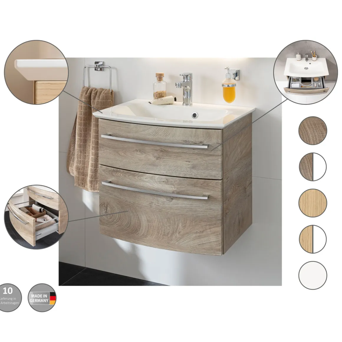 - Zwei geräumige Schubladen für ausreichend Stauraum im Bad