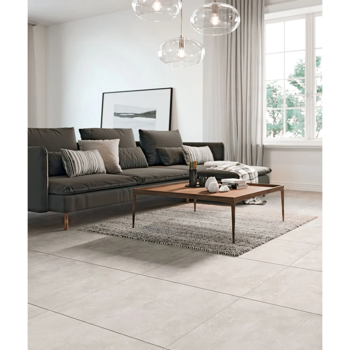Erleben Sie mit der Feinsteinzeug-Fliese Stamford in hellgrau eine moderne Betonoptik für Ihre Innen- und Außenbereiche. Die rektifizierte Fliese ist besonders robust und eignet sich perfekt für Feuchträume, Keller und Wohnräume.