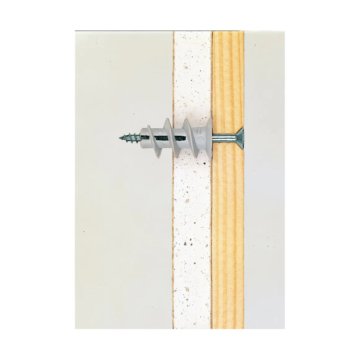 Mit den Fischer Fischer Gipskartondübeln können Sie Bilder, Leuchten, Elektroinstallationen und Einrichtungsaccessoires schnell und einfach an Gipskartonplatten befestigen. Der Dübel ist aus Nylon gefertigt und hat ein selbstschneidendes Gewinde. Er eignet sich für einfache und doppelt beplankte Gipskartonplatten sowie Plattenbaustoffe & Hohlräume. Inklusive Schrauben/Haken sind nicht im Lieferumfang enthalten.