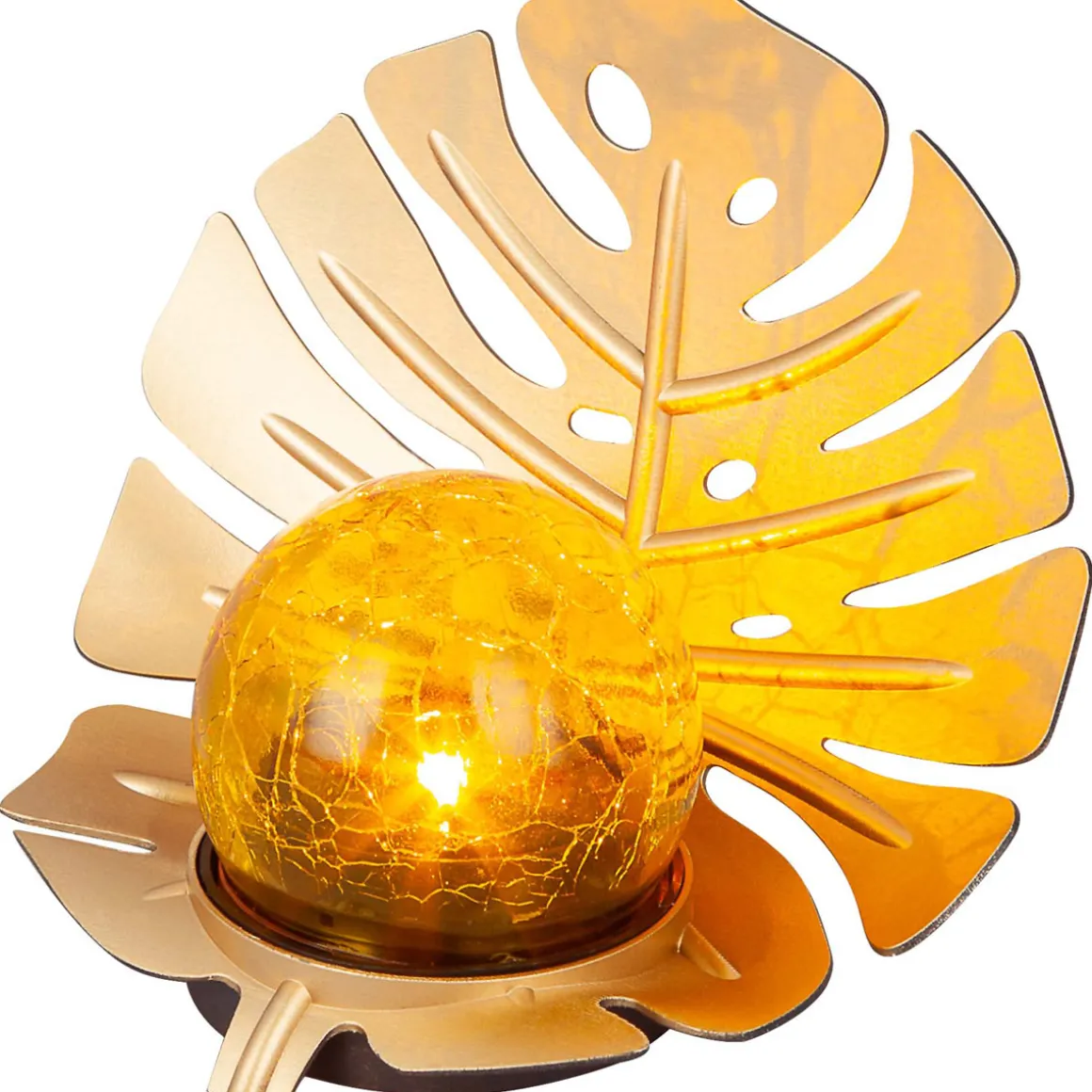 Flector Solar-Dekoleuchte Golden Monstera inkl Glaskugel in Bruchoptik gold