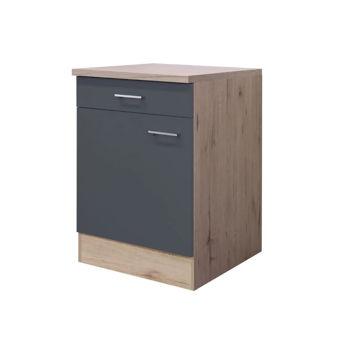 Warten Sie nicht länger! Der Flex-Well Küchenunterschrank Tiago vereint modernes Design mit praktischer Funktionalität – genau das Richtige für Ihre Traumküche! Verleihen Sie Ihrem Zuhause einen Hauch von Eleganz durch die basaltgrauen Fronten kombiniert mit dem warmen Ton von San Remo Eiche.Dank seiner kompakten Maße passt dieser Unterschrank perfekt in jeden Raum Ihrer Wohnung. Und das Beste? Die einfache Montage spart Ihnen Zeit und Mühe! Gönnen Sie sich dieses hochwertige Möbelstück noch heute bei .Klicken Sie jetzt auf ‚In den Warenkorb‘ und bringen Sie frischen Wind in Ihre Küche!