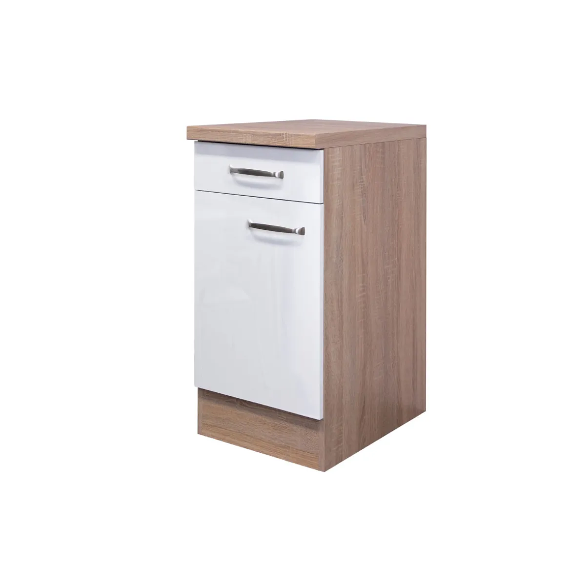 Dieser Küchenunterschrank ist wie gemacht für alle Kunden, die Wert auf Qualität, Design und Funktionalität legen. Wenn Sie nach einem Möbelstück suchen, das nicht nur praktisch ist, sondern auch optisch begeistert, dann werden Sie den Flex-Well Unterschrank lieben! Seine kompakte Größe macht ihn besonders geeignet für kleine bis mittelgroße Küchen – perfekt also auch bei begrenztem Platzangebot. Die Kombination aus Hochglanz-weißen Fronten und dem warmen Holzton der Sonoma-Eiche-Nachbildung schafft eine harmonische Balance zwischen modernem Stil und natürlichem Charme.Für Hobbyköche bietet er ausreichend Stauraum zur Organisation Ihrer Kochutensilien oder Vorräte – alles griffbereit an einem Ort! Dank seiner robusten Arbeitsplatte können Sie ihn zudem vielseitig nutzen: sei es zum Abstellen kleiner Geräte oder zum Vorbereiten leckerer Gerichte.Und das Beste? Der Aufbau geht kinderleicht vonstatten! Mit einer detaillierten Anleitung sowie allen notwendigen Montagematerialien ausgestattet sparen Sie Zeit beim Zusammenbau. So bleibt mehr Raum fürs Wesentliche: Ihr neues Küchenerlebnis!