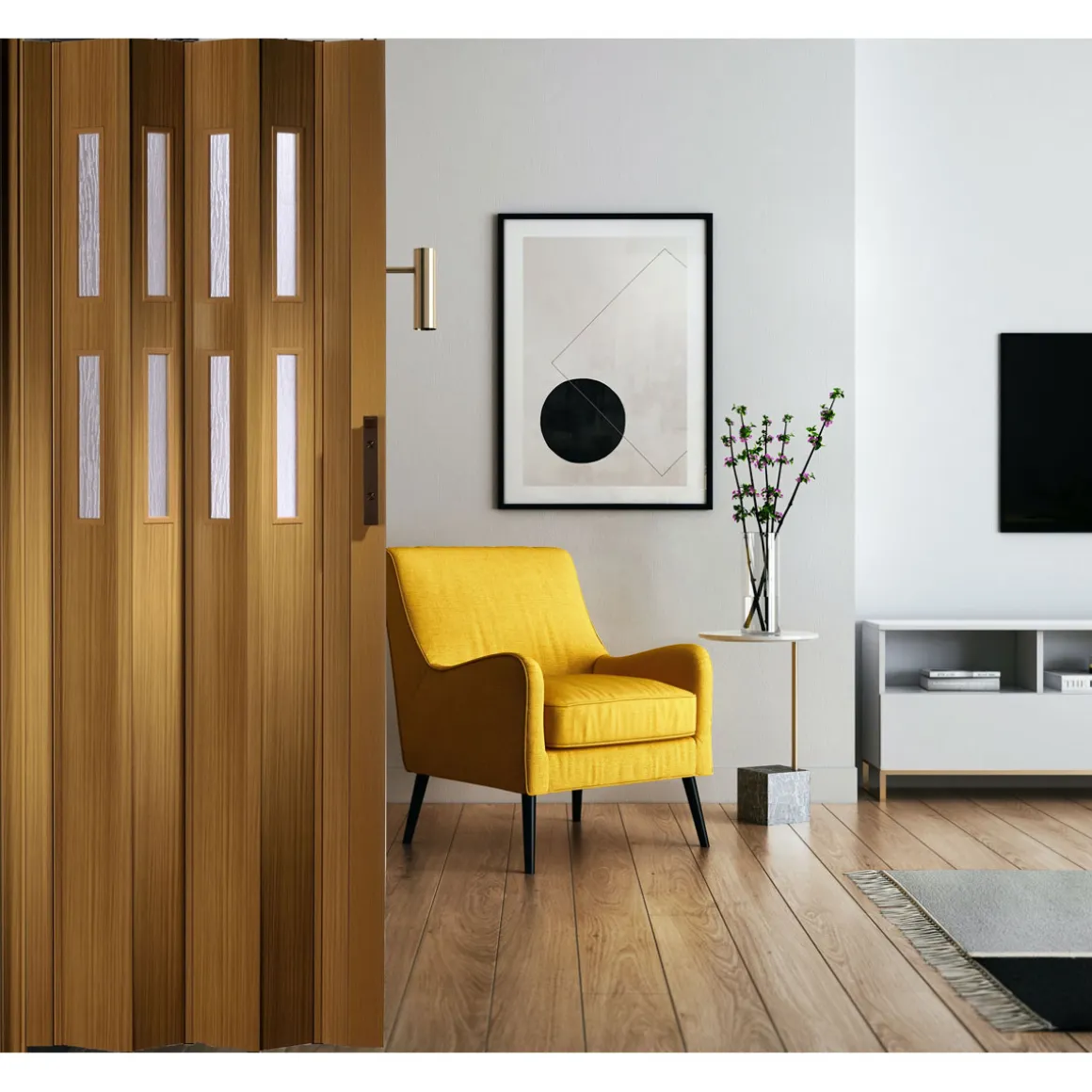 Unsere Kunststoff-Falttür Modell „Luciana“ – die moderne Alternative in verschiedenen Farben. Hochwertig bedruckte Varianten für holzähnliche Oberflächen oder in weiß-Pastell, die in jedes Ambiente passen. Falttüren können in Türbereiche mit und ohne Zargen eingebaut werden und eignen sich damit perfekt für alle Bereiche im Wohn- und Gewerbebereich. Hochwertige Faltmechanismen ermöglichen ein geräuschloses Öffnen und Schließen. 10 mm-Hohlkammerprofile geben der Tür gute stabile Eigenschaften, die ein langlebiges Produkt ausmachen.