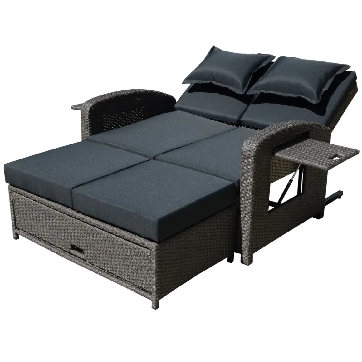 Warten Sie nicht länger! Das Funktionssofa Nizza bringt Stil und Gemütlichkeit direkt in Ihren Garten. Mit seinem stabilen Stahlgestell und der edlen Optik aus Kunstrattan überzeugt es nicht nur funktional, sondern auch optisch auf ganzer Linie. Die praktischen Extras wie die verstellbare Rückenlehne und die bequemen Auflagen machen dieses Möbelstück unverzichtbar für alle Outdoor-Liebhaber. Bestellen Sie noch heute bei – Ihr neues Lieblingsmöbel wartet schon darauf, Teil Ihrer Wohlfühlmomente zu werden!