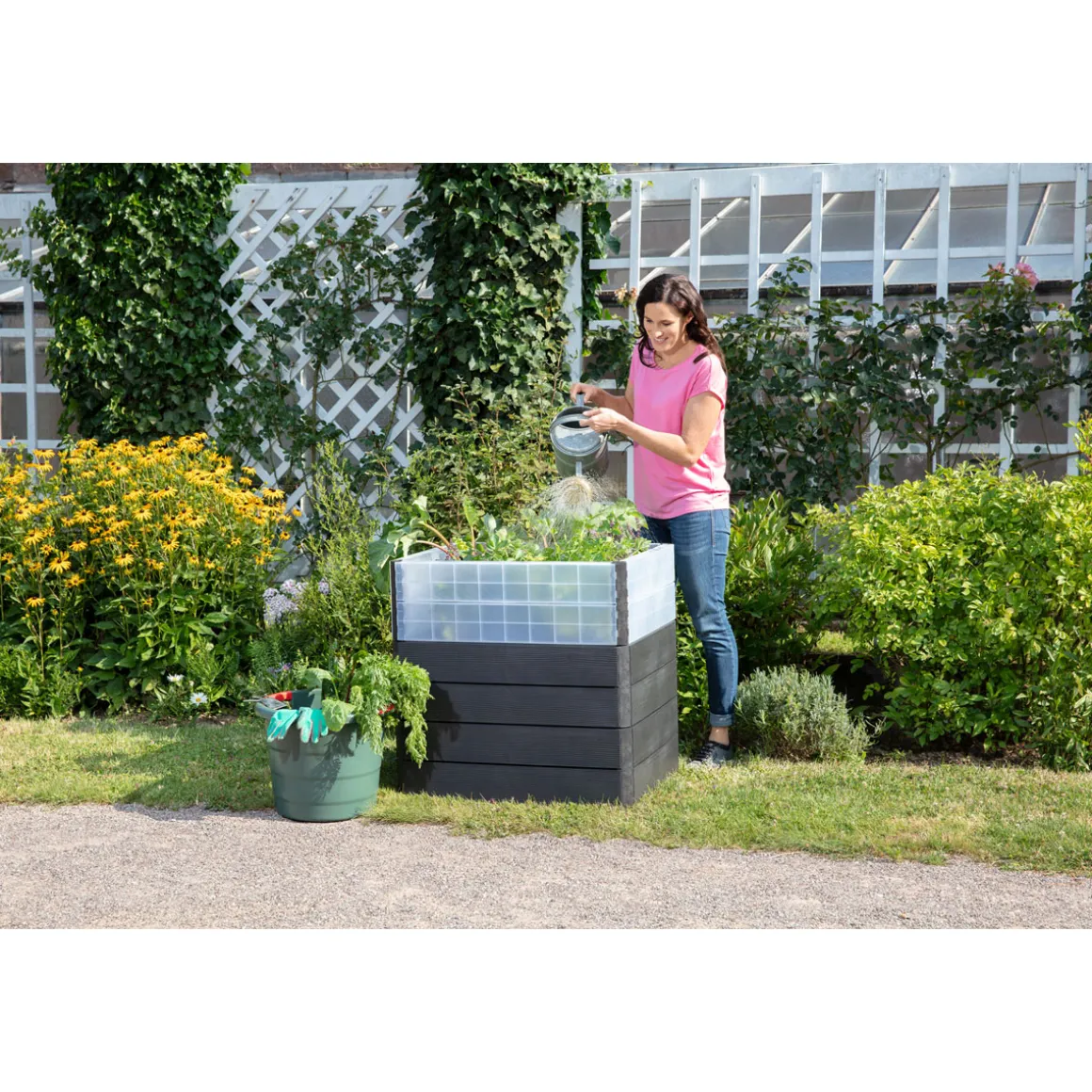 Mit dem Garantia Hochbeet ERGO QUADRO Turbo M 75 Wood inkl FLORA wird Gärtnern zum Erlebnis. Das moderne Design in Holzoptik und die hochwertigen Materialien machen das Beet zu einem echten Hingucker. Doch nicht nur optisch überzeugt das Hochbeet, auch die Ausstattung lässt keine Wünsche offen.