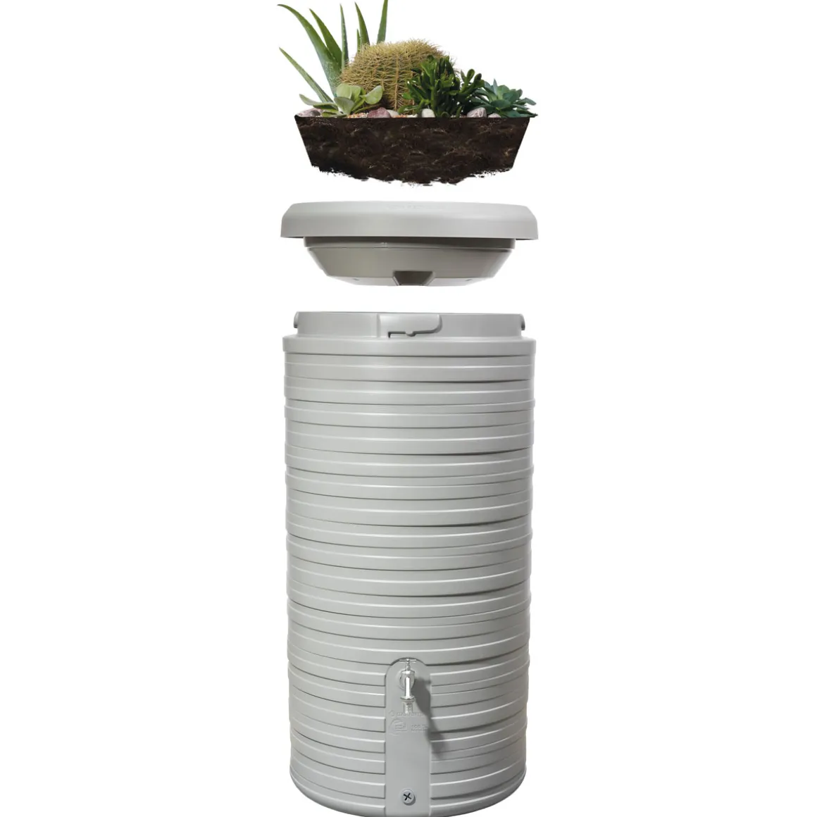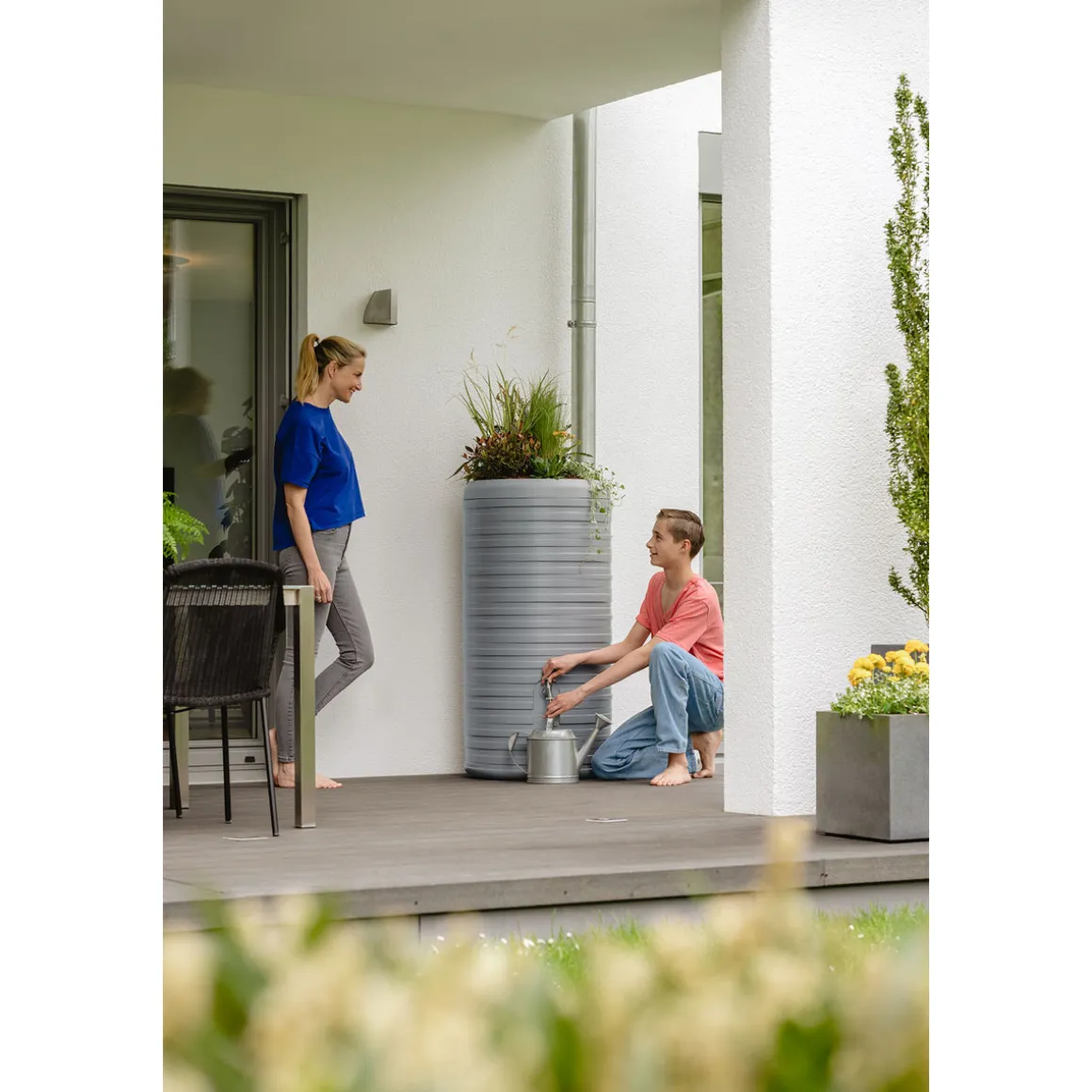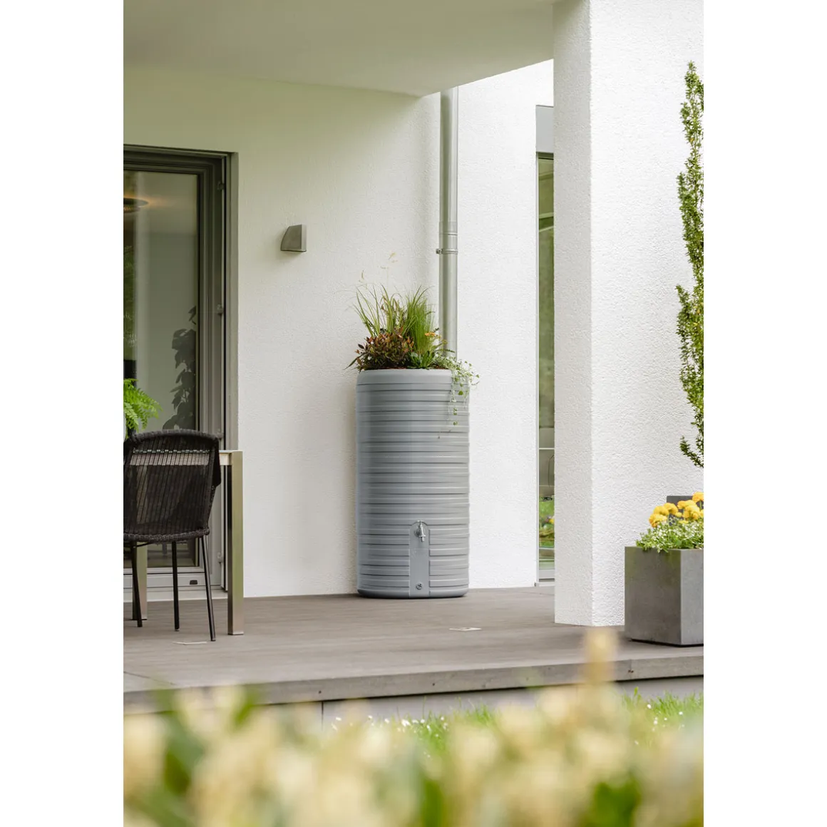 Garantia Regentonne Nordic 2in1 300 Liter steingrau – Stilvoller Wasserspeicher mit Pflanzschale