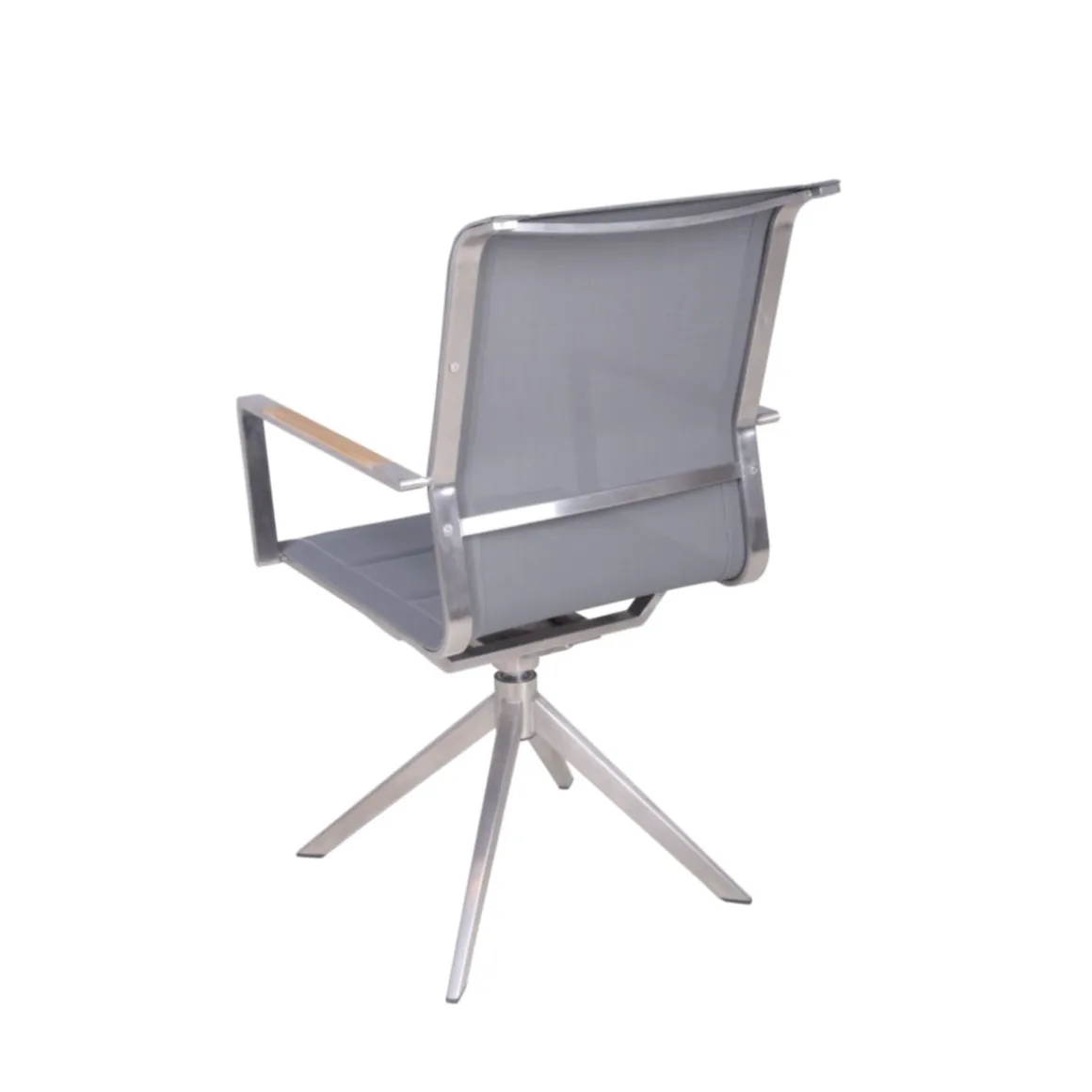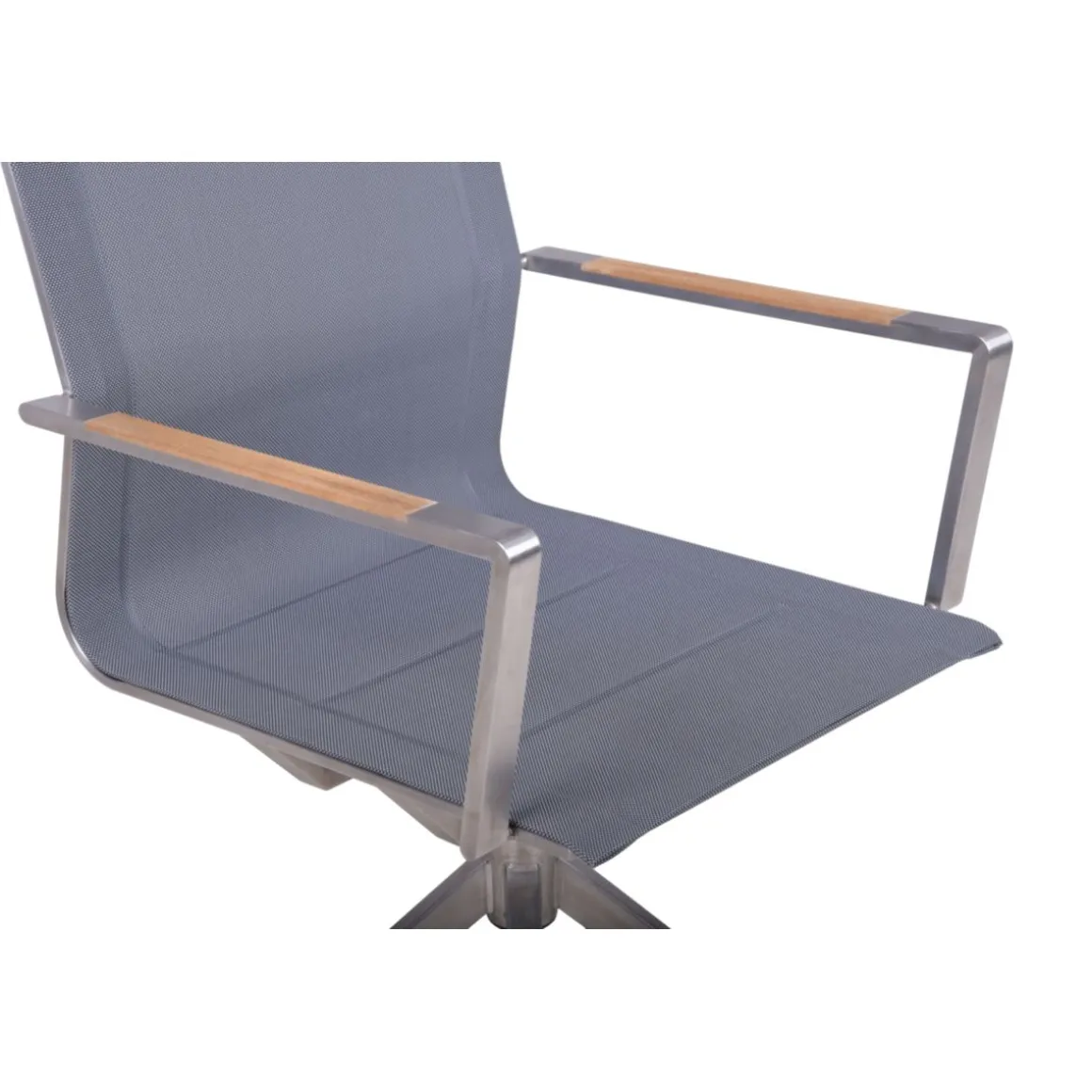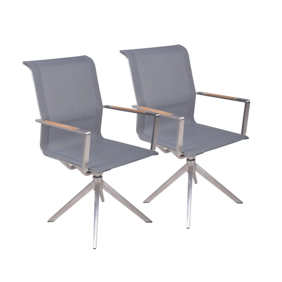 Garden Pleasure Drehstuhl SALIDA. 2er Set Edelstahl, Kunststoffgewebe, Teakholz