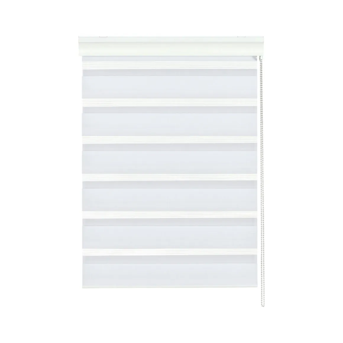 Das Doppelrollo mit Kassette ermöglicht eine ganz individuelle Lichtregulierung und hat ein Maß von 120×160 cm.Das Gardinia Doppelrollo mit weißer Aluminiumkassette eignet sich sowohl für die Wand- als auch für die Deckenmontage und ermöglicht eine flexible Lichtregulierung. Der weiße Stoff aus 100% Polyester ist umweltfreundlich beschichtet und verfügt über transparente und halbtransparente Balken, die sich in verschiedene Positionen bringen lassen, bis hin zu blickdichten Bereichen. So lassen sich vielseitige Lichteffekte wie bei einer Jalousie erreichen. Das Rollo wird inklusive Befestigungsmaterial geliefert und eignet sich für alle Räumlichkeiten. Ob Schlafzimmer, Kinderzimmer, Wohnzimmer oder Küche, dieses Rollo kommt überall gut zur Geltung. Die Bedienung erfolgt seitlich über eine Endlosschnur und ist denkbar einfach.Das Gardinia Doppelrollo mit Kassette verfügt über einen umweltfreundlich beschichteten Polyesterstoff und schafft eine behagliche Atmosphäre.