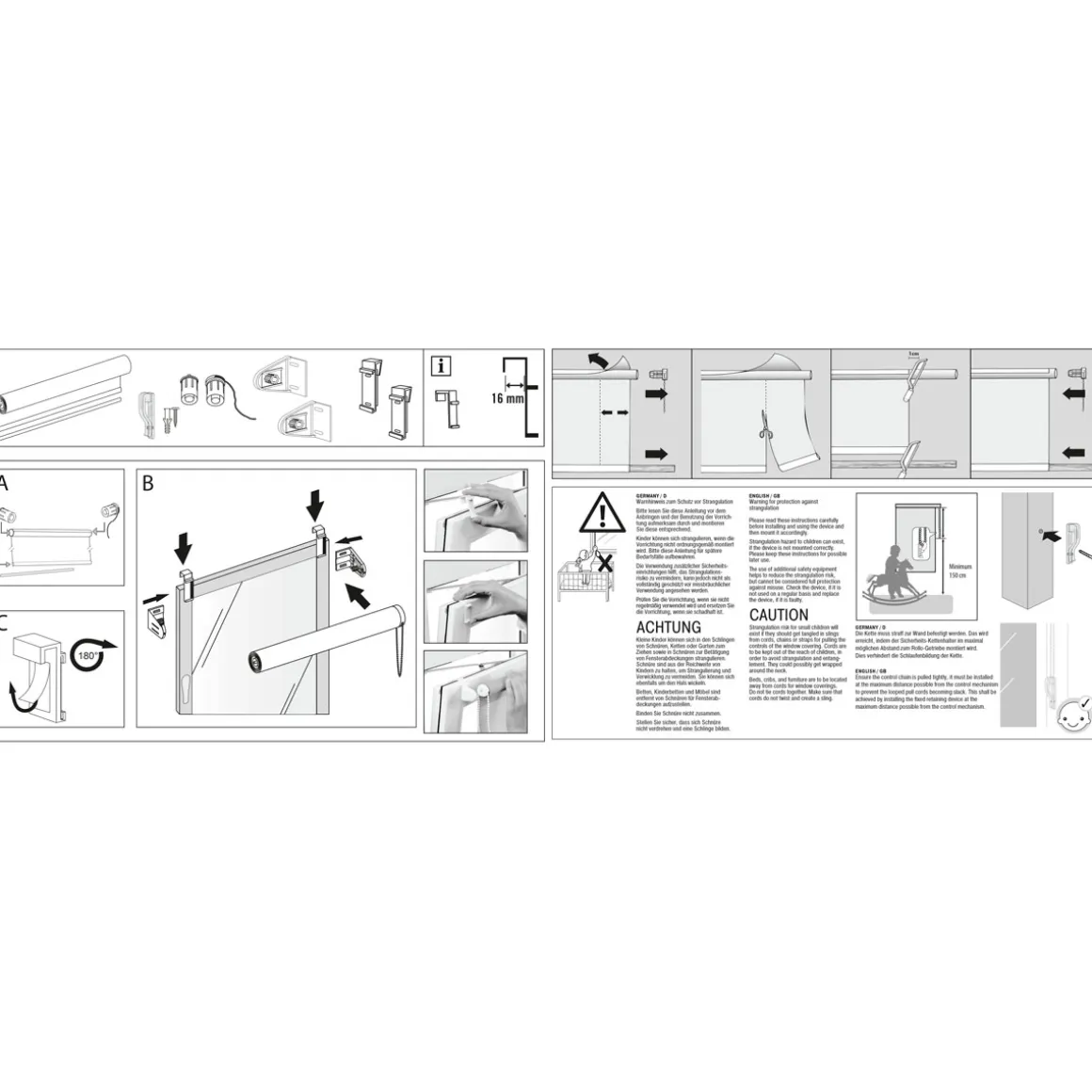 - – Werkzeuglose Montage dank Klemmträgern für Fensterflügel mit Stärke von bis zu 16 mm oder Schraubmontage möglich