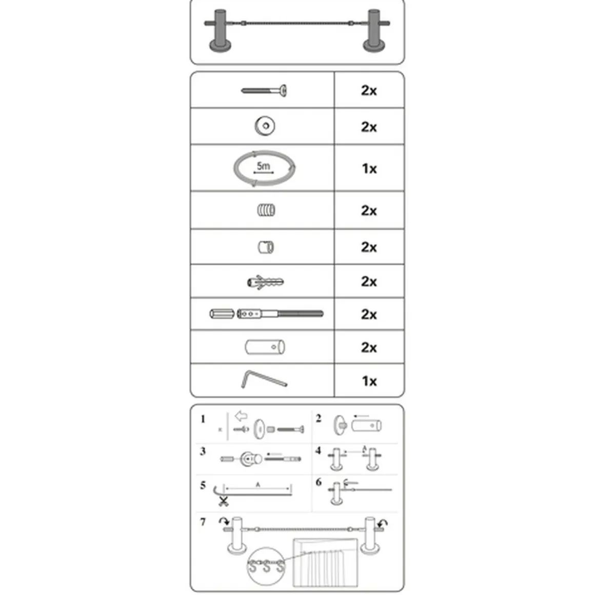 - Gardinenstange mit Seilspanngarnitur für Innenräume