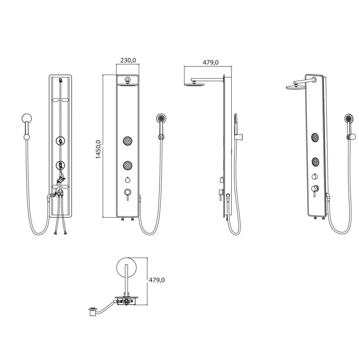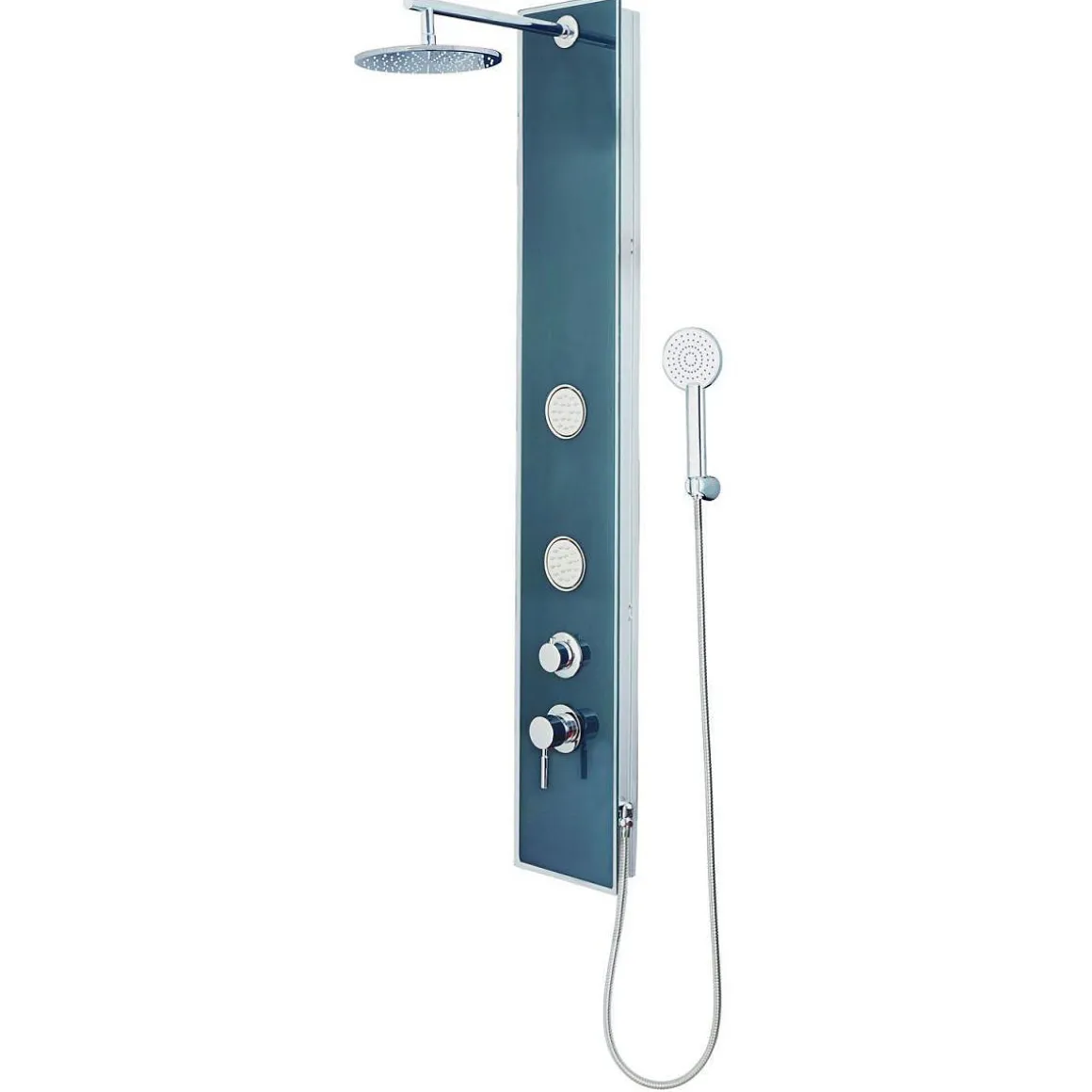 Mit dem Glas-Duschpaneel Ibiza holen Sie sich ein hochwertiges Produkt ins Bad, das nicht nur durch sein edles Design überzeugt, sondern auch durch seine Funktionalität. Die drei Massagedüsen und die Regendusche bieten ein unvergleichliches Wellness-Erlebnis. Dank der einfachen Montage ohne Bohren können Sie das Duschpaneel schnell und unkompliziert installieren. Gönnen Sie sich jetzt dieses besondere Duscherlebnis!