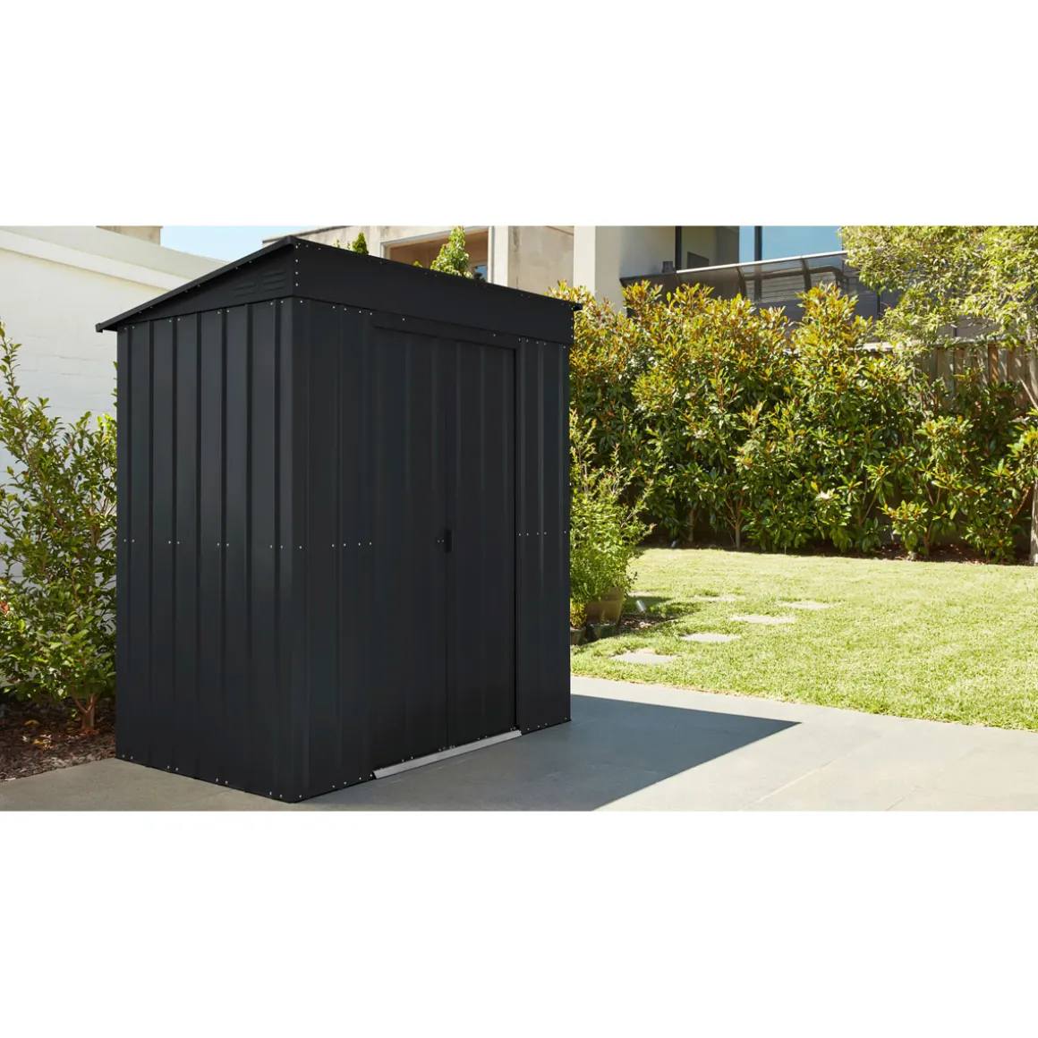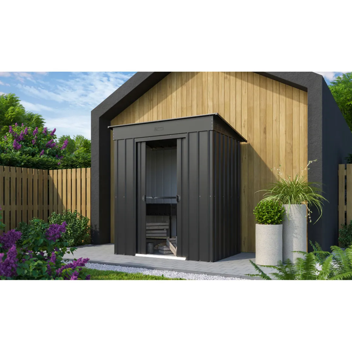 Das Premiumgerätehaus „SKILLION“ fügt sich mit seinen kleinen Grundflächen leicht auch in kleinere Gärten, auch direkt an der Hauswand ein. Bei einer Deckenhöhe zwischen 1,75 und 1,78m bietet es dank seines Pultdaches zudem eine gleichbleibende Höhe im gesamten Innenraum. Breite Doppelschiebetüren und ein Grundriss im Querformat gewähren mühelosen Zugang und Zugriff von außen.Feuerverzinkter Stahl in feinrippigen Paneelen und innen verstärkte Ecken sorgen für überlegene Stabilität im Vergleich zu üblichen Stahlblechhäusern. Auch die mehrstufige Einbrennlackierung und der weitgehende Verzicht auf Kleinteile aus Kunststoff, so z.B. durch gestanzte Lüftungsschlitze, zeugen von durchdachtem Design.Die Premiumgerätehäuser von globel bestechen durch ihre hochwertige Verarbeitung: Das Stahlblech ist stets komplett feuerverzinkt und weist aufgrund des feinrippigen Panel-Designs und der innen verstärkten Ecken eine erhöhte Stabilität auf. Es gibt keine spitzen Schrauben im Innenbereich, weil sie in ein Kastenprofil geschraubt werden – in herkömmlichen Metallgerätehäuser sind hier üblicherweise L-Profile verarbeitet. Die Farbe wird nach der Herstellung der Stahlbasis in einem 4-stufigen Verfahren eingebrannt und veredelt. Das macht die Oberfläche robust gegen Rost und Kratzer. Bei der Verarbeitung wird weitestgehend auf Kleinteile aus Kunststoff verzichtet. So ist z.B. die Dauerbelüftung über gestanzte Lüftungsschlitze gegeben.SKILLION ist in zwei Größen von 2,23 bis 3 Quadratmetern und in zwei Farben erhältlich. Das Premiumgerätehaus wird als Bausatz ohne Boden geliefert.
