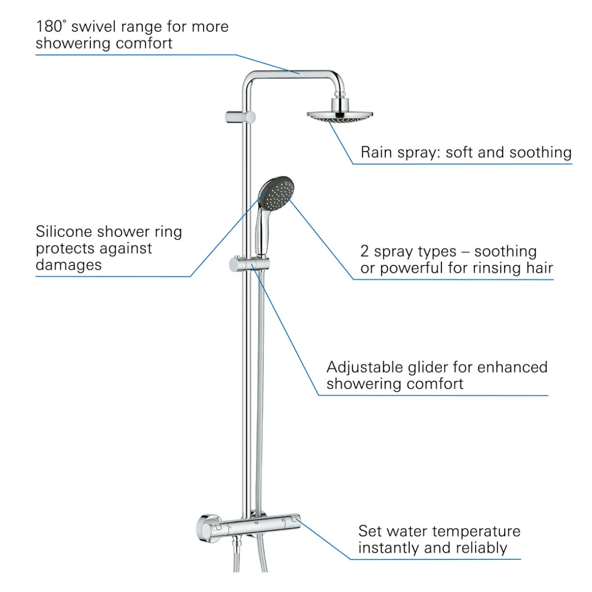 - GROHE TurboStat® (Konstante Wassertemperatur auch bei schwankendem Wasserdruck)