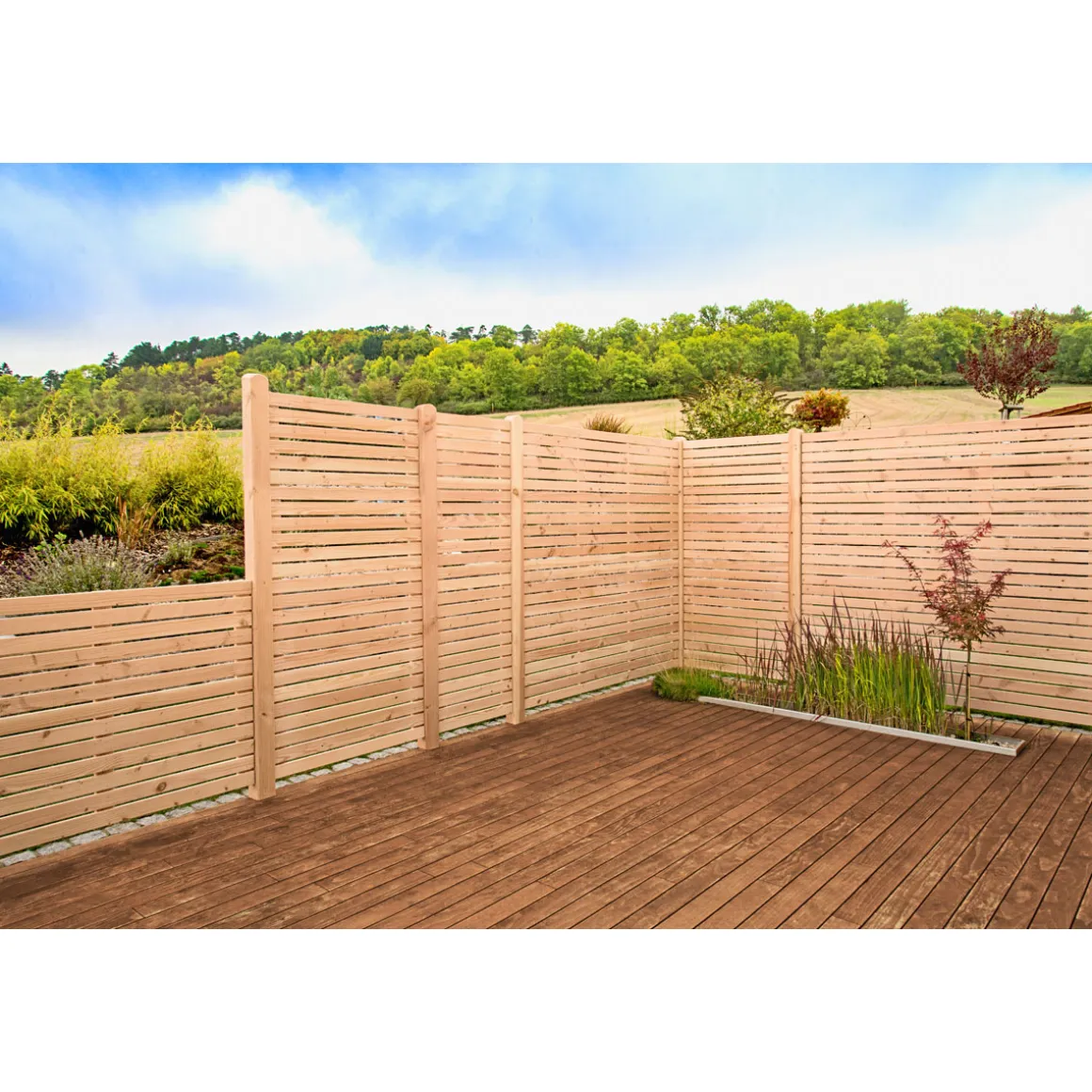 Mit dem Grundelement schmal Lattenzaun Douglasie holen Sie sich nicht nur einen zuverlässigen Sichtschutz in den Garten, sondern auch ein optisches Highlight. Die natürliche Farbe und Maserung des Holzes verleihen Ihrem Außenbereich eine warme Atmosphäre.