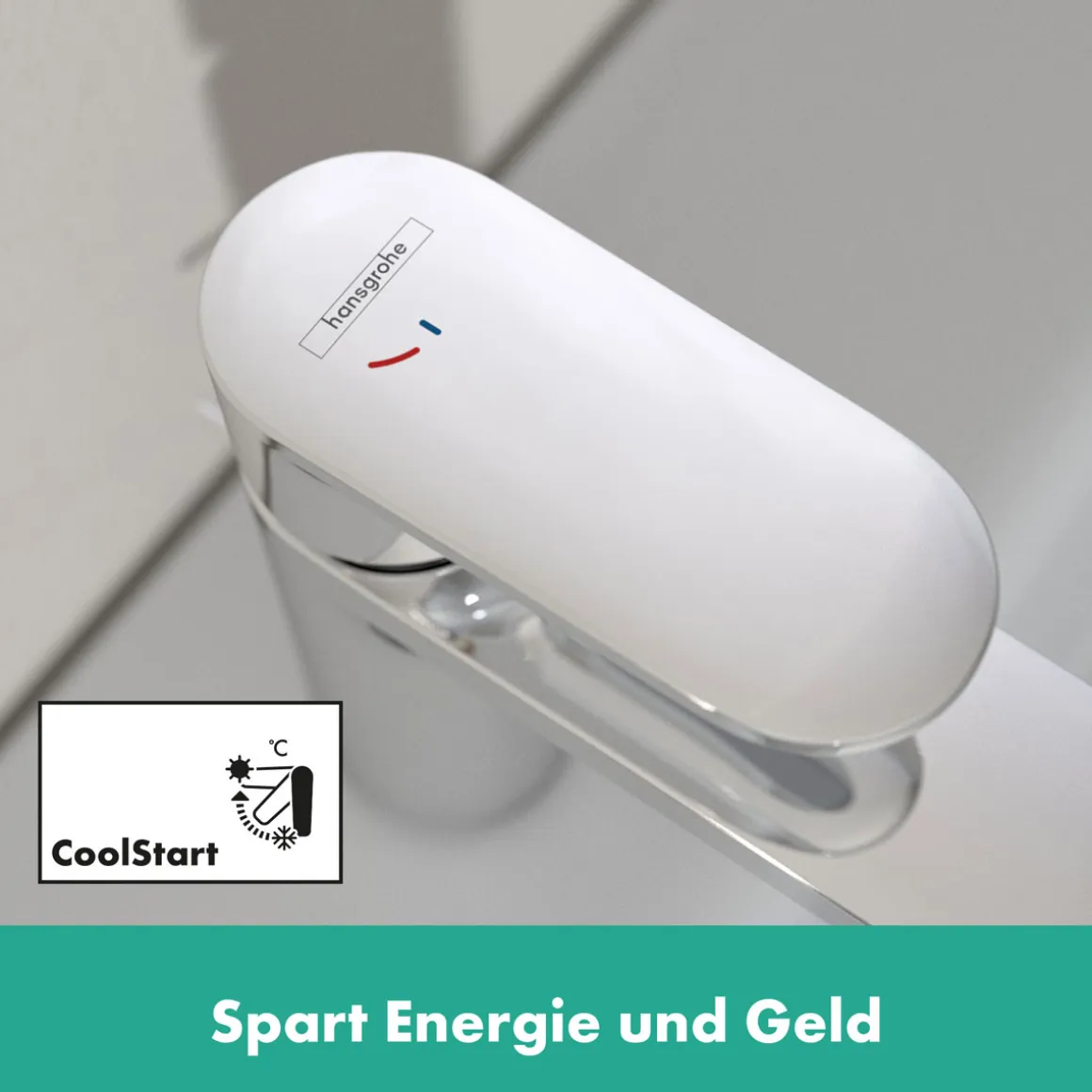 Bei dieser energiesparenden Armatur fließt erst Heißwasser, wenn man den Hebel aktiv bewegt – während bei Standardarmaturen in Griff-Grundstellung sofort Energie verbraucht wird. CoolStart schont Ressourcen und senkt CO2-Ausstoß und Kosten.