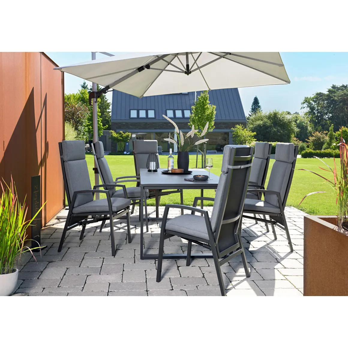 - Inklusive Schirmständer für einen stabilen Stand