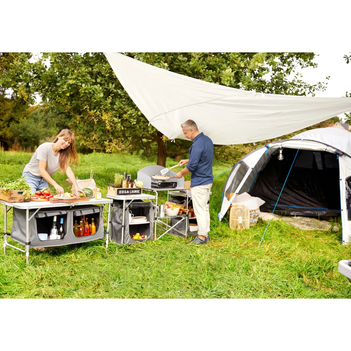 Dieser Tisch ist perfekt für alle, die gerne campen oder Outdoor-Aktivitäten unternehmen und dabei nicht auf Komfort verzichten möchten. Auch für Familienausflüge oder Picknicks im Park ist er bestens geeignet.