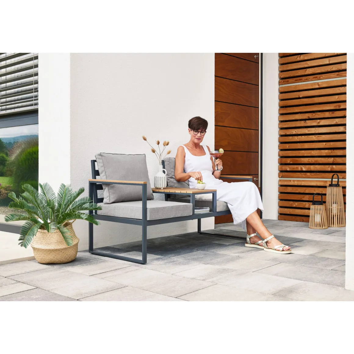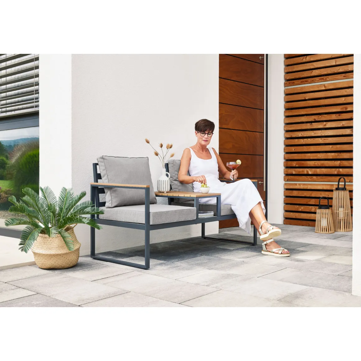 Sie lieben es, Ihre Freizeit im Freien zu verbringen? Dann wird die Haveson Gartenbank Konstanz Ihr neuer Lieblingsplatz! Diese Bank vereint Funktionalität mit Design und bietet Ihnen alles, was Sie brauchen: Komfortable Sitzplätze mit weichen Auflagen laden zum Verweilen ein. Der integrierte Mitteltisch ist perfekt geeignet, um Ihre Tasse Tee oder kleine Snacks abzustellen. Die edle Kombination aus grauem Gestell und Holzoptik-Details bringt modernes Flair in Ihren Außenbereich. Egal ob Terrasse oder Garten – diese Bank fügt sich nahtlos ein und wird schnell zum Mittelpunkt Ihrer Outdoor-Oase.