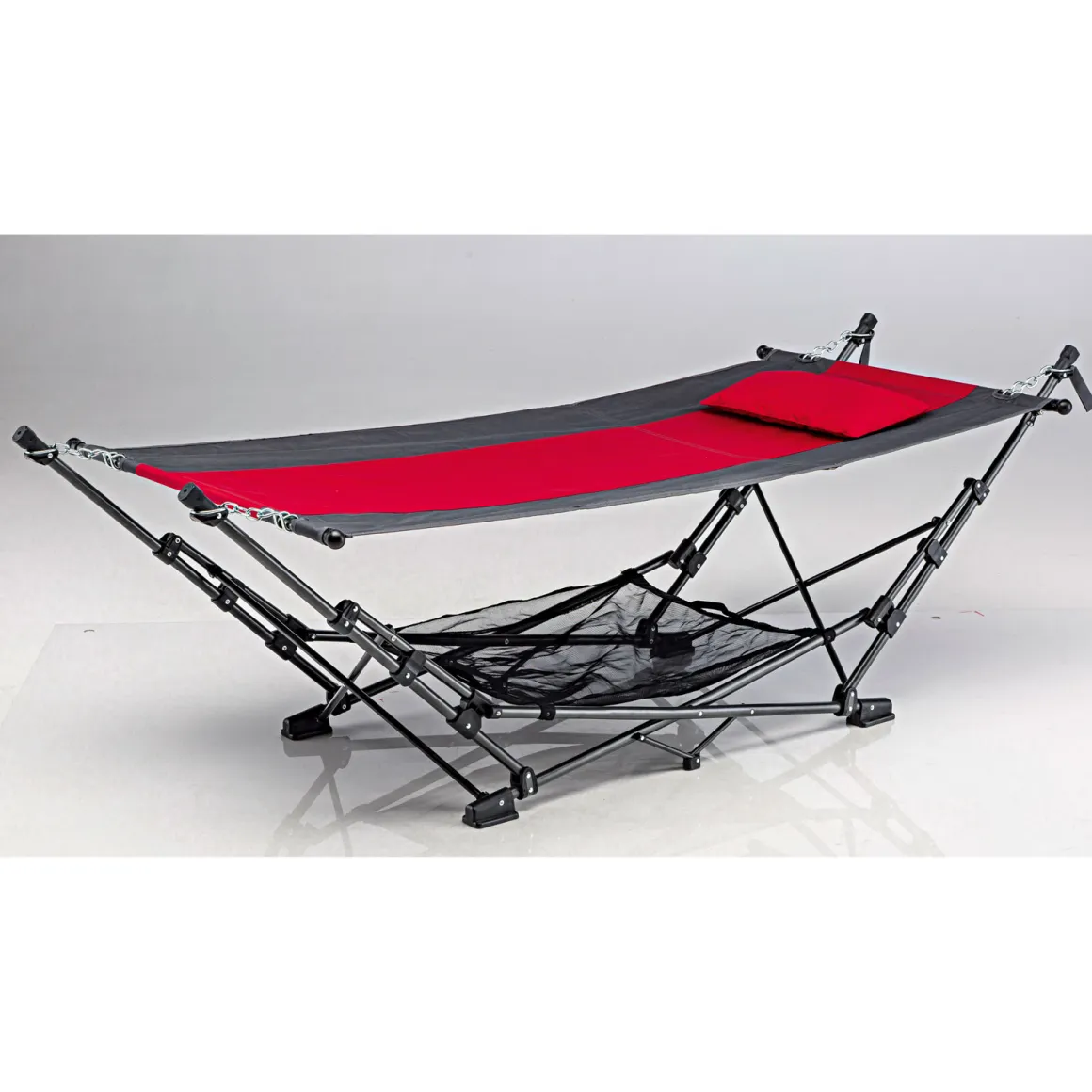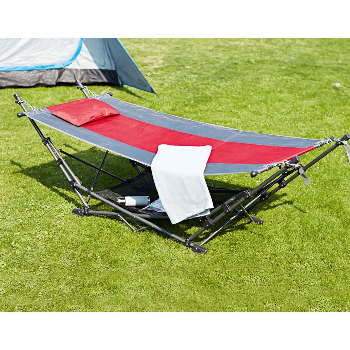 - Faltbare Einzel-Hängematte aus Polyester in Grau/Rot