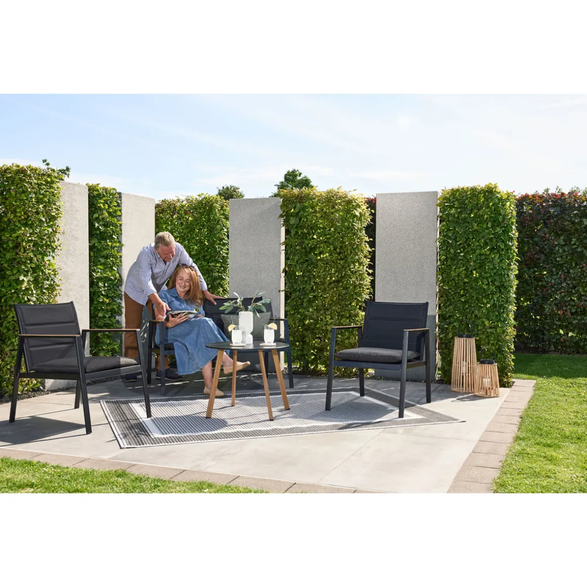 - Inklusive schwarzer Auflagen aus Olefin-Material, die besonders strapazierfähig und pflegeleicht sind.