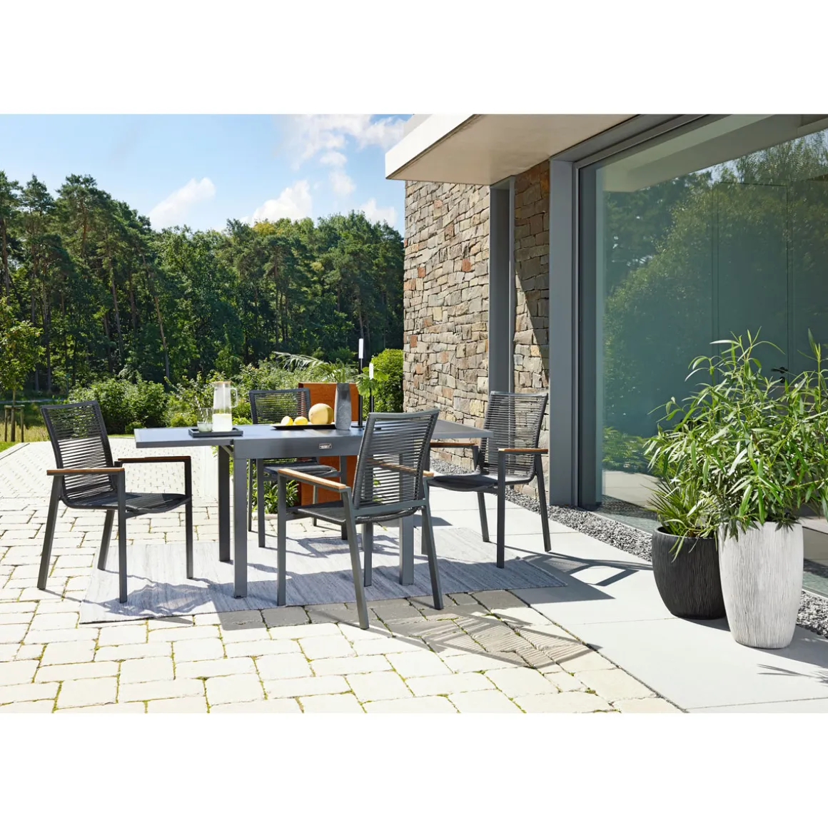 - Sitzfläche aus strapazierfähigem PE-Bespannungsmaterial in anthrazit