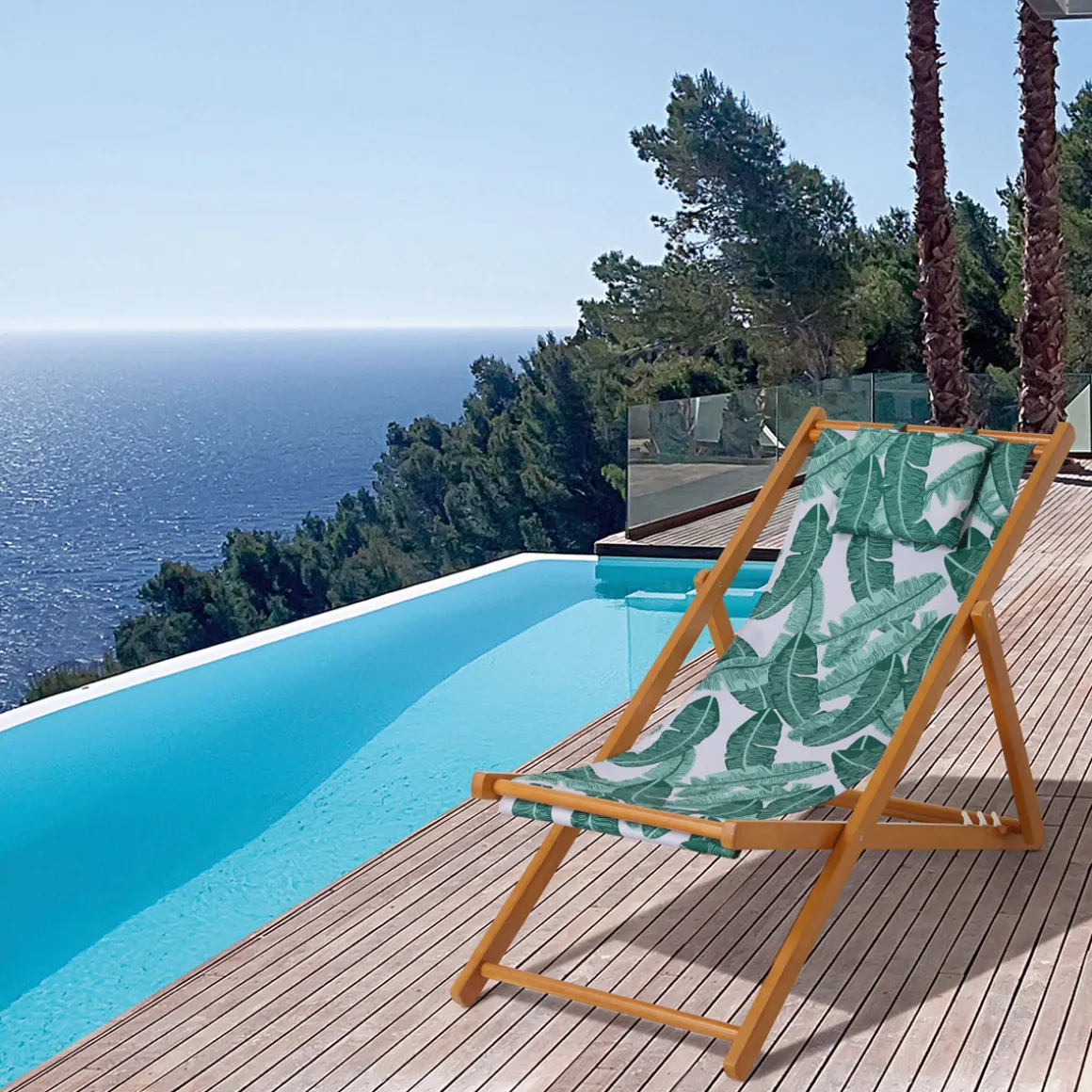 Haveson Strandstuhl Palmenblatt Hartholz mit Kopfkissen klappbar