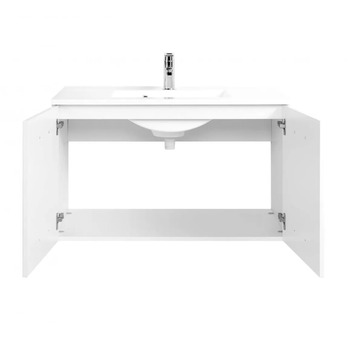 | Extras: | 2 Drehtüren gedämpfte Türscharniere alle Beschläge aus Metall viel Stauraum inkl. Mineralgussbecken |