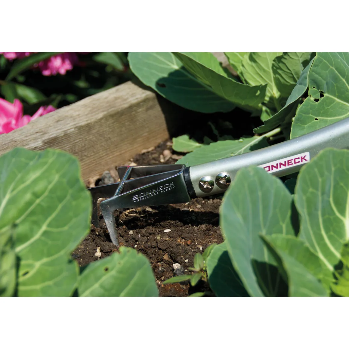 - Scharfe Zinken aus gehärtetem Stahl für eine effektive Unkrautbekämpfung