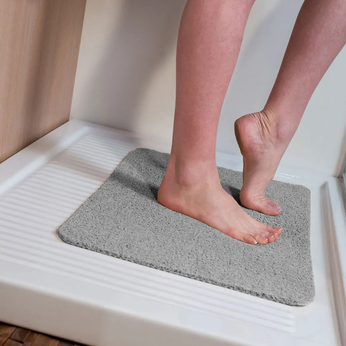 - Duschmatte rutschfest : Gefertigt aus einem geflochtenen Material, das Wasser durchfließen lässt