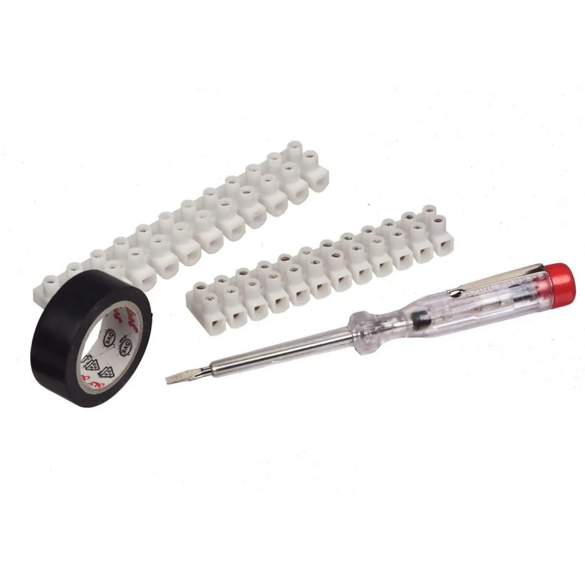 - – Enthält Isolierband, Phasenprüfer und 2 Lüsterklemmen