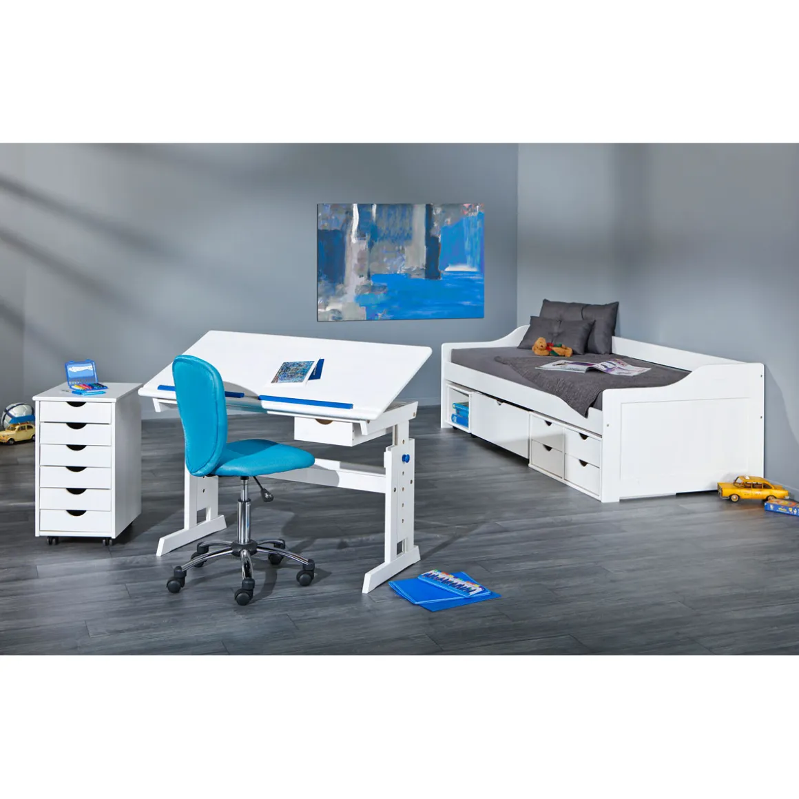 - Eingebaute Schublade bietet praktischen Stauraum für Schreibutensilien oder persönliche Gegenstände.