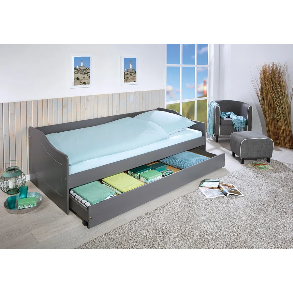 Inter Link Sofabett Malte 90×200 cm grau mit Funktions-Schublade – Stilvoll und praktisch
