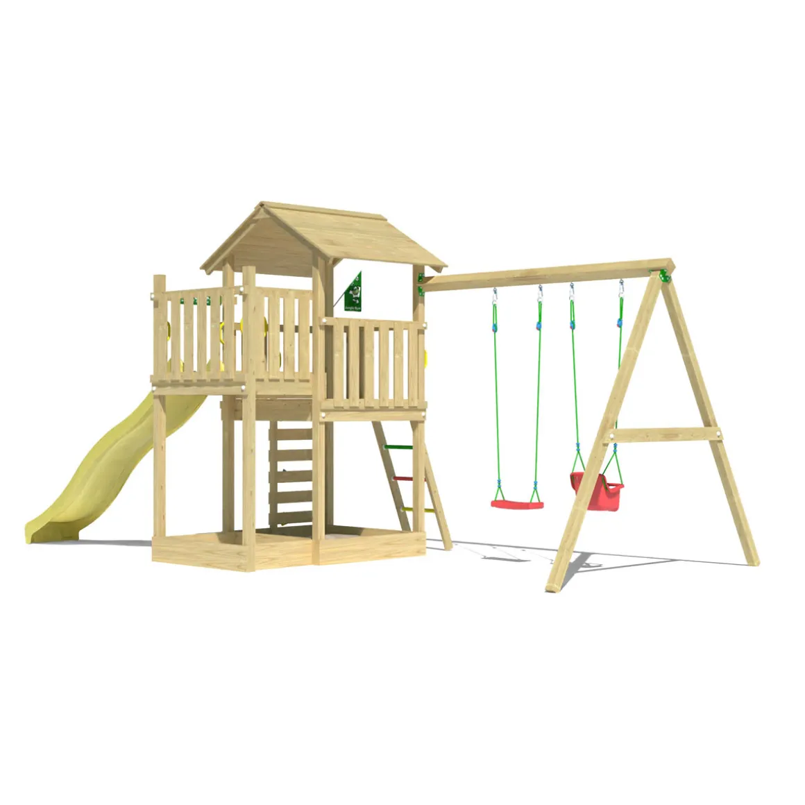 - Leiter ermöglicht sicheren Aufstieg auf den Turm und trainiert die Koordination der Kleinen