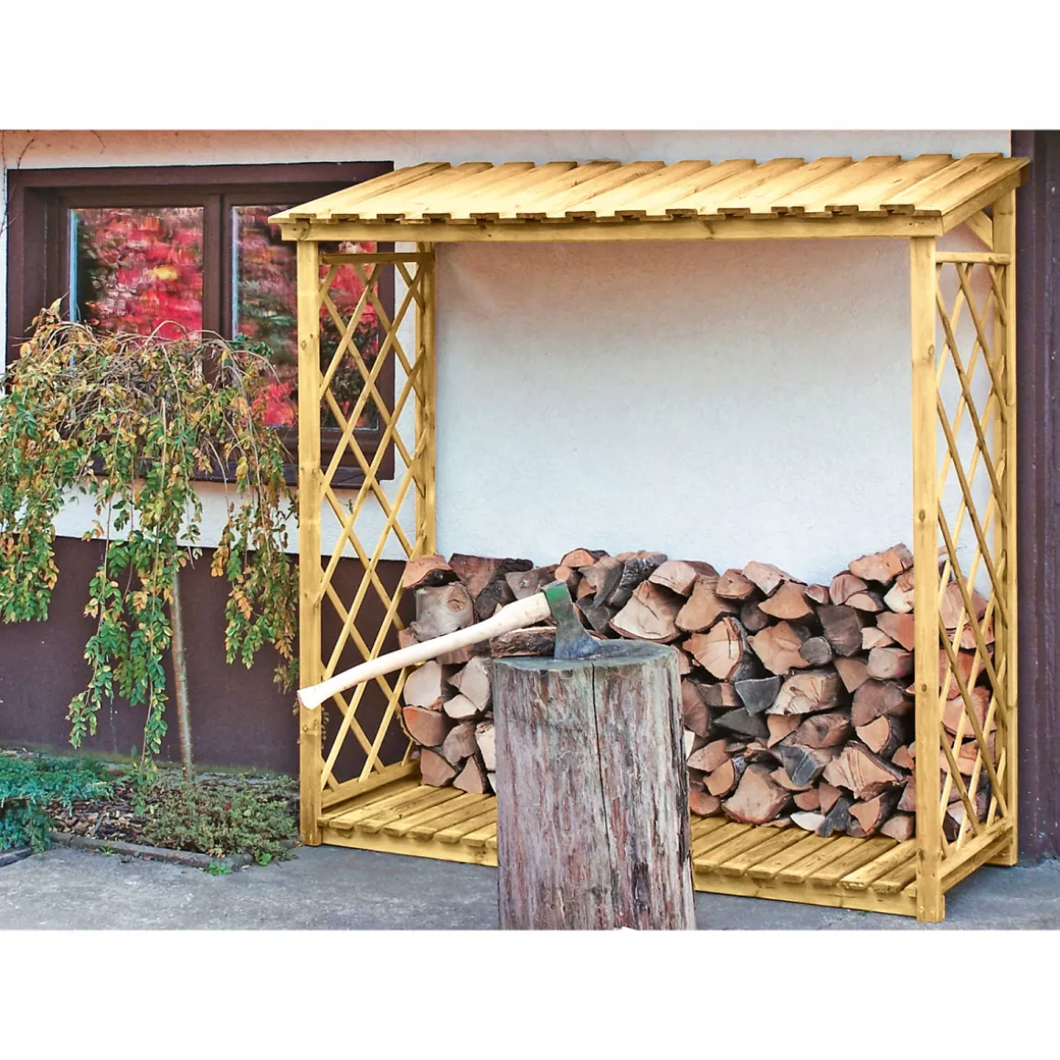 Mit dem Kaminholzregal wird die langfristige Lagerung von Kaminholz zum Kinderspiel. Das kesseldruckimprägnierte Nadelholz und die natürliche Farbe machen das Regal zu einem optischen Highlight.