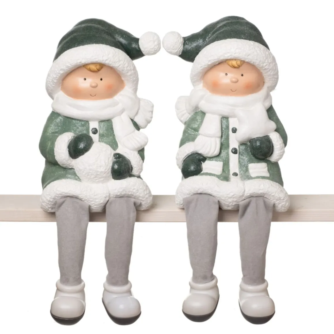 Kantensitzer Winterkinder 2er-Set 30cm grün weiss