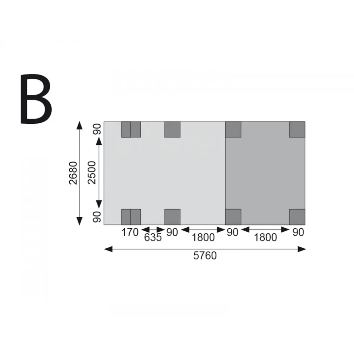 Der Einzelcarport „Eco 2“ Variante C ist ein moderner und geräumiger Unterstand für einen Pkw.Der Einzelcarport „Eco 2“ überzeugt durch seine hochwertige Verarbeitung und das zeitlose Design. Mit einer Einfahrtsbreite von 250 cm und einer Einfahrtshöhe von 206 cm lässt sich das Auto bequem und sicher einstellen. Das Außenmaß des Carports beträgt 268×576 cm, das Innenmaß 250×558 cm. Der Einzelcarport besitzt einen Überstand hinten von 23 cm, an den Seiten jeweils von 18 cm und vorne von 81 cm. Der Carport ist aus kesseldruckimprägniertem Massivholz hergestellt und aufwändig verarbeitet. Die Dacheindeckung besteht aus lichtundurchlässigem Kunststoffwellenprofil. Die Eindeckung wird mit 0,8 mm starken, grauen PVC Trapezplatten vorgenommen und ohne Beschläge geliefert. Das Dach hält einer Schneelast von bis zu 75 kg/m² stand. Das Gesamtgewicht des Carports beträgt 286,6 kg.Der Einzelcarport „Eco 2“ inkl. zwei Einfahrtsbögen überzeugt durch eine klassische und stilvolle Optik.