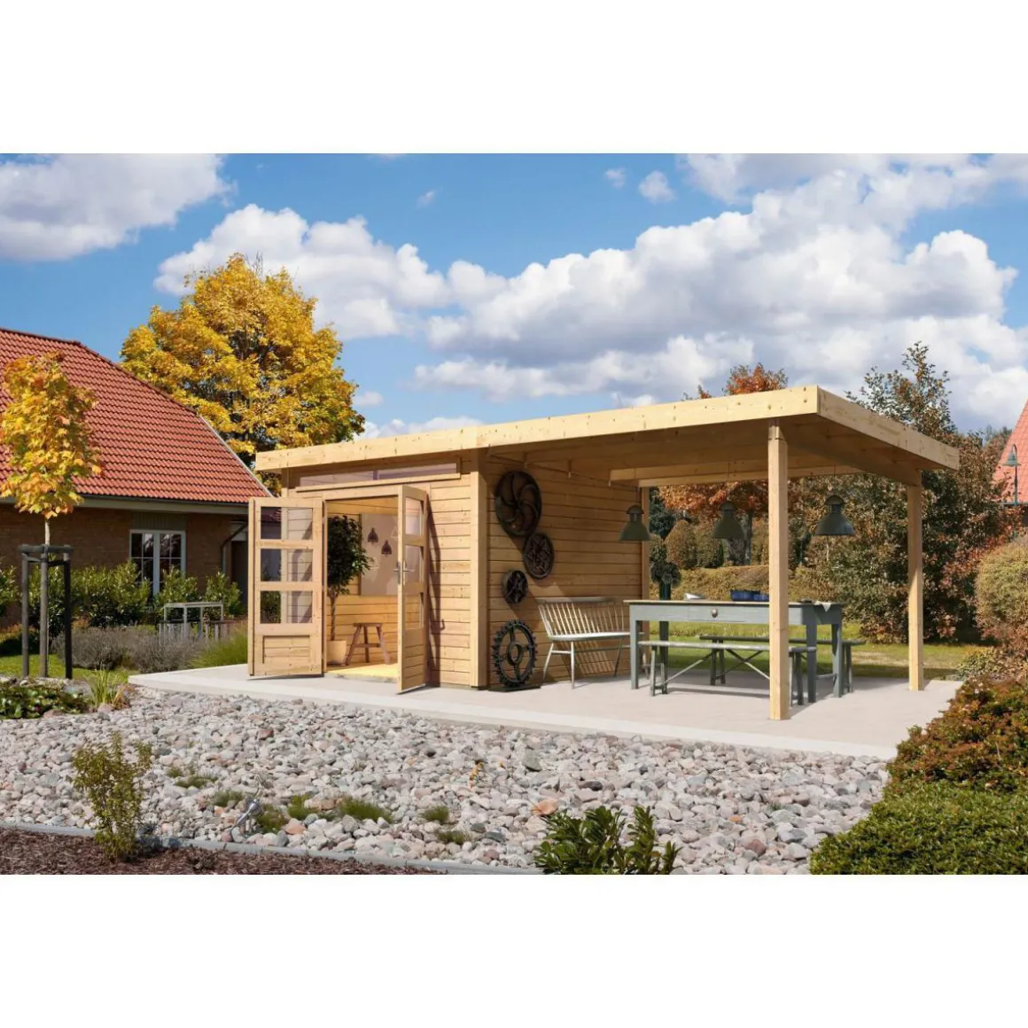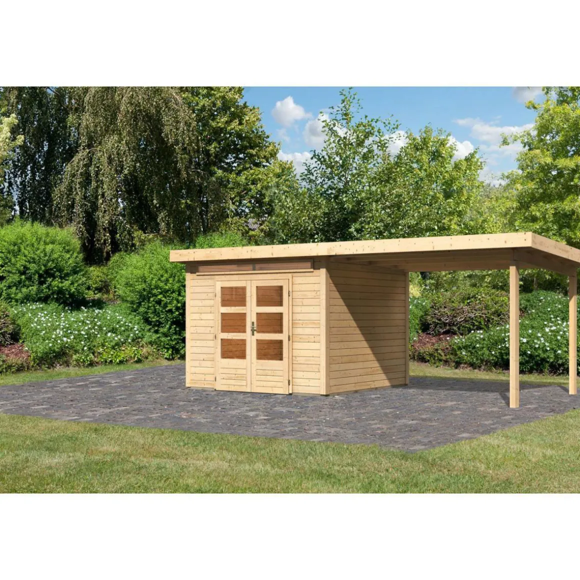 Karibu Gartenhaus-Set Kandem 6 mit Anbaudach 2,95 m naturbelassen