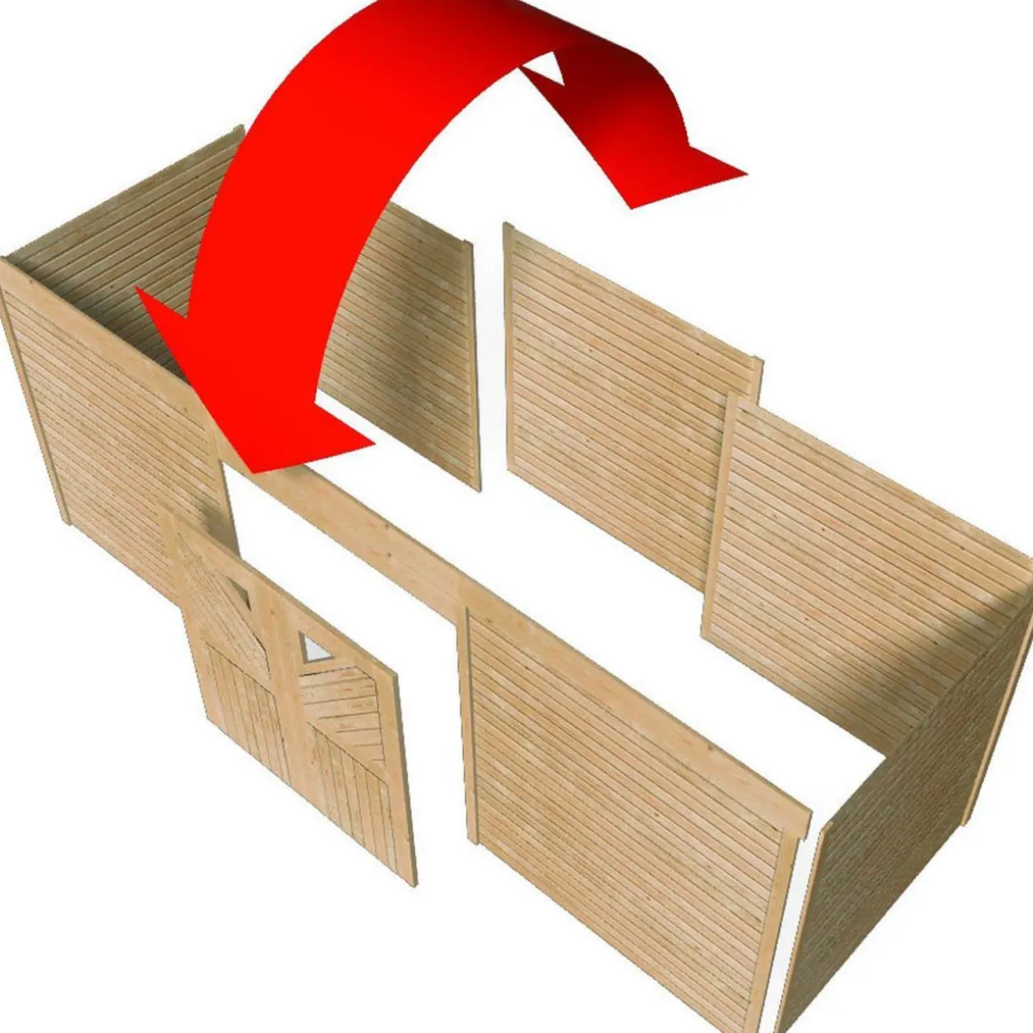 Karibu Gartenhaus-Set Kandem 7 mit Anbaudach 2,95 m mit Seiten- und Rückwand naturbelassen