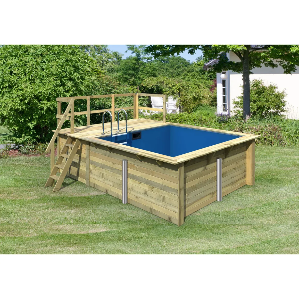 Mit dem Karibu Pool Größe 1 44 mm inkl. Terrasse holen Sie sich das Urlaubsfeeling direkt in Ihren Garten. Das hochwertige Fichtenholz und die robuste PVC-Innenfolie sorgen für eine lange Haltbarkeit und ein angenehmes Badeerlebnis. Mit einer Wassertiefe von 111 cm bietet der Pool ausreichend Platz zum Schwimmen und Planschen.