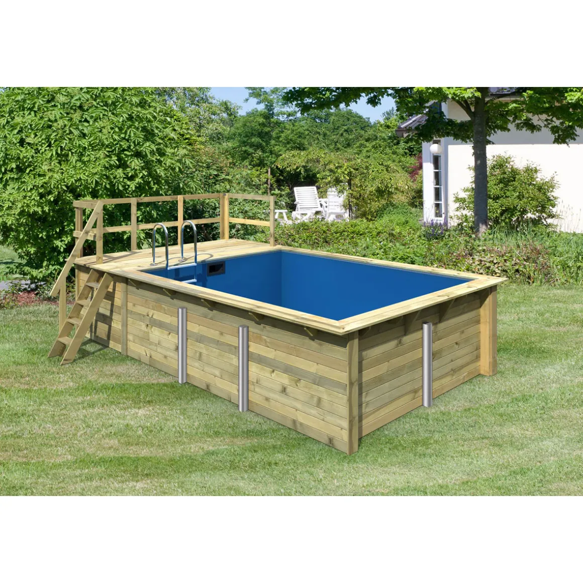 Erleben Sie Badespaß und Entspannung pur mit dem Karibu Pool Größe 2. Das hochwertige Aufstellbecken aus Fichtenholz mit einer Stärke von 44 mm und einer Imprägnierung ist nicht nur robust, sondern auch optisch ein Highlight. Mit einer Wassertiefe von 111 cm und einem Fassungsvermögen von 12.700 Litern bietet der Pool ausreichend Platz für die ganze Familie.