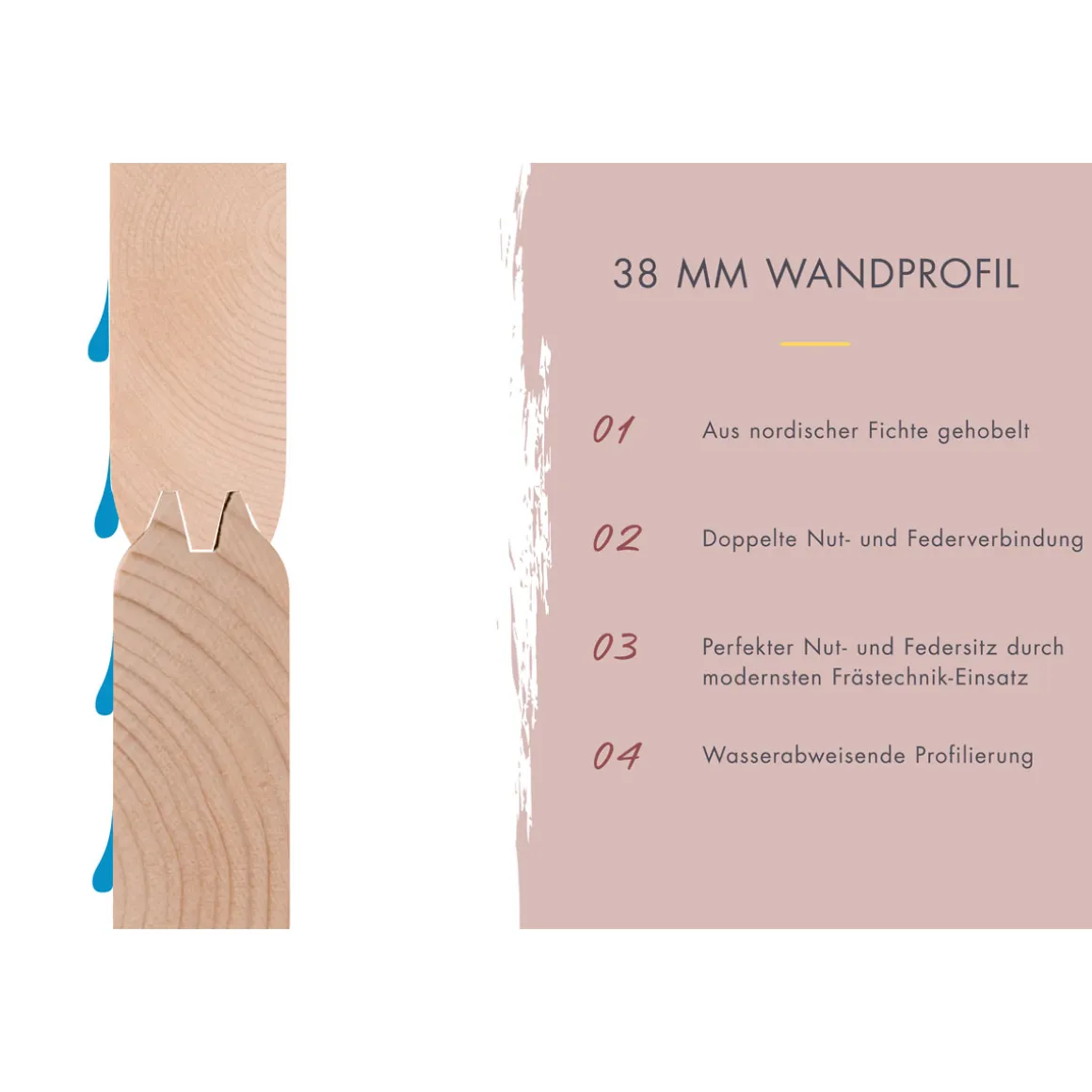 Karibu Saunahaus Mikka 38 mm ohne Ofen Milchglastür