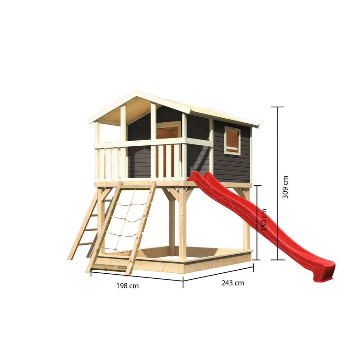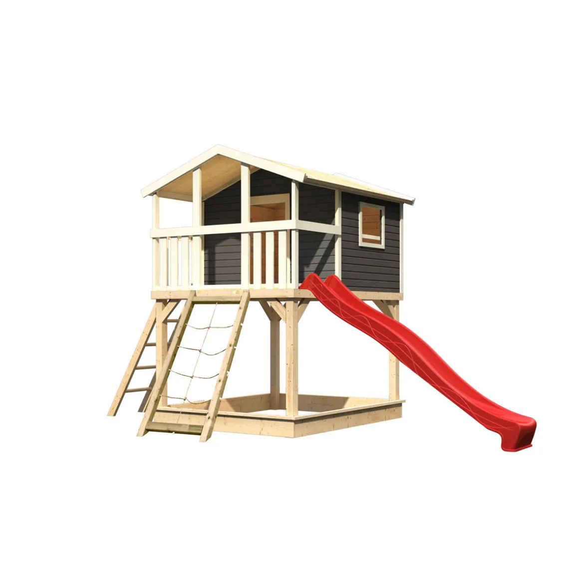 Karibu Stelzenhaus Benjamin natur inkl Rutsche rot und Netzrampe