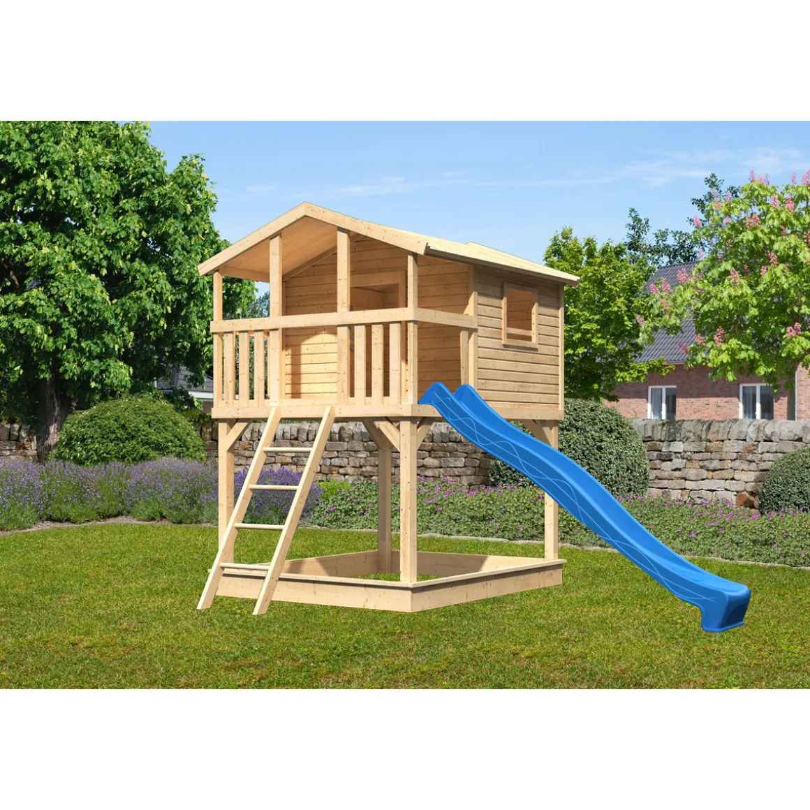 Karibu Stelzenhaus Benjamin naturbelassen inkl Rutsche blau