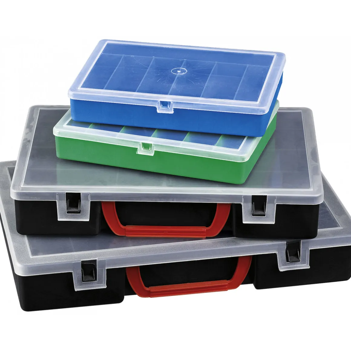 Mit dem Kreher Organizer-Set 4-teilig haben Sie endlich alles im Griff. Das Set besteht aus vier praktischen Sortierkästen, die Ihnen dabei helfen, Ihre Werkstatt oder Garage aufgeräumt zu halten.