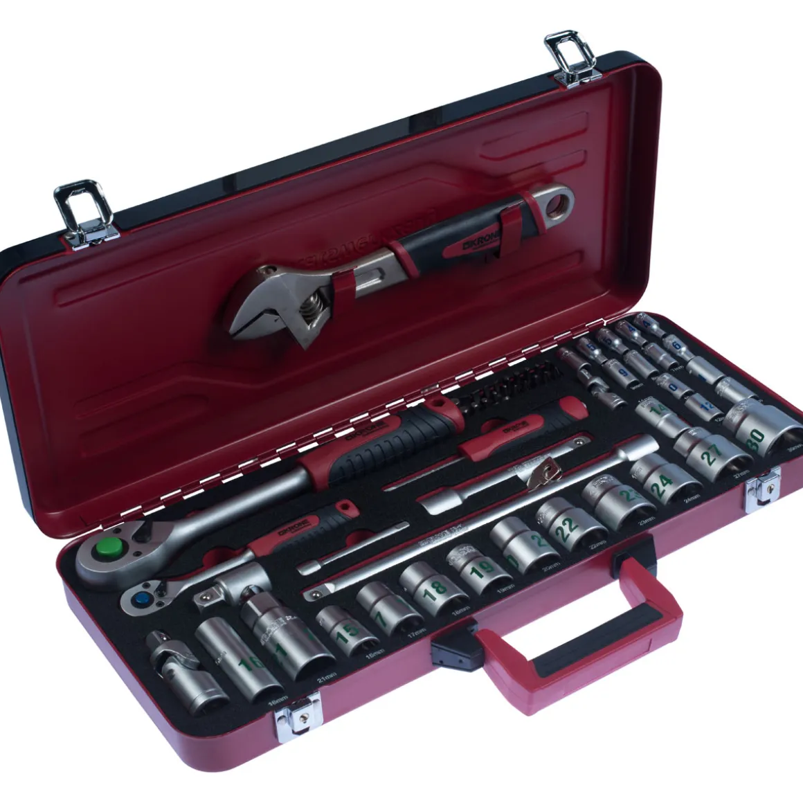Krone 1/4 und 1/2 Steckschlüsselsatz – 56-teilig aus Chrom-Vanadium