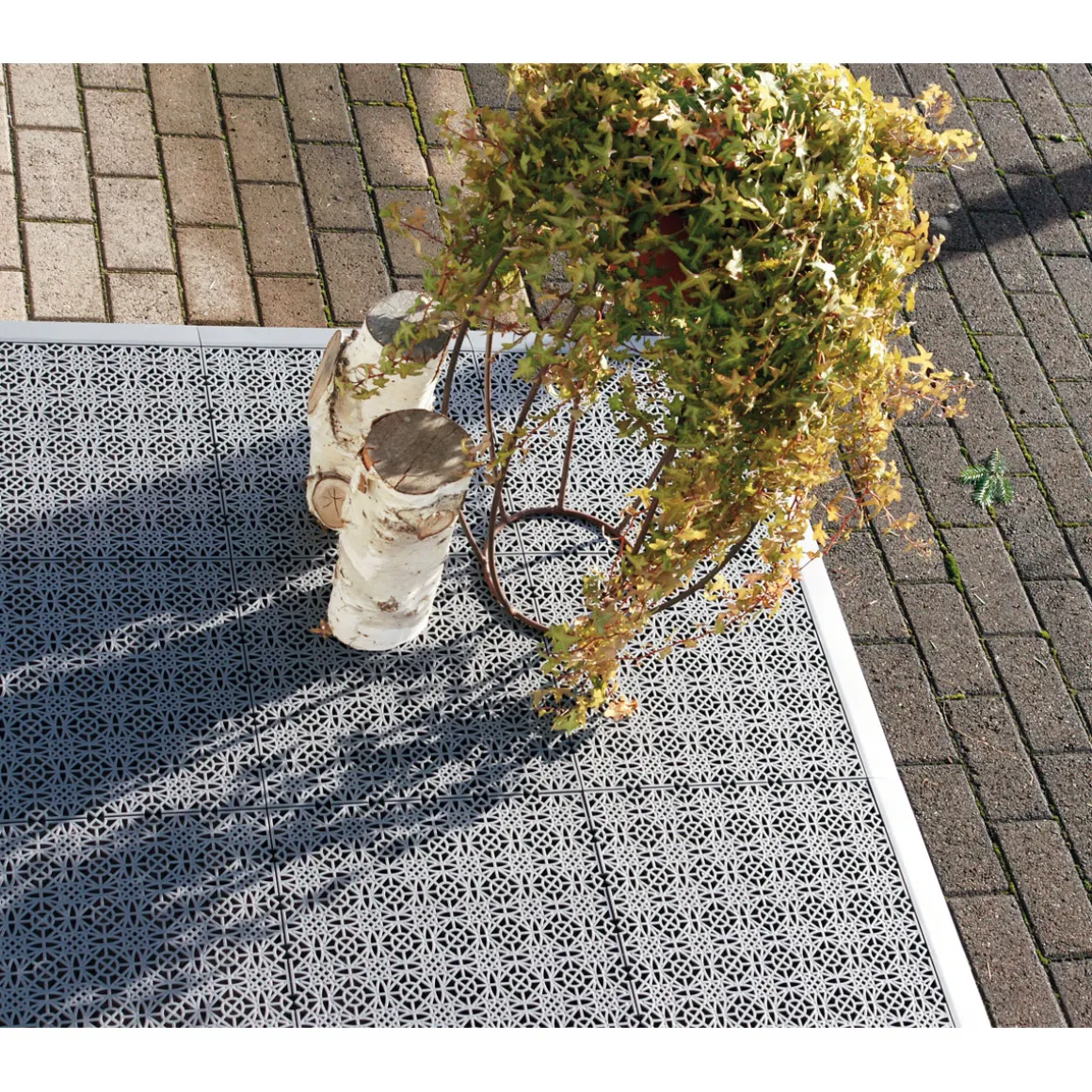 - Die Fliesen sind aus hochwertigem Kunststoff gefertigt und somit witterungsbeständig.