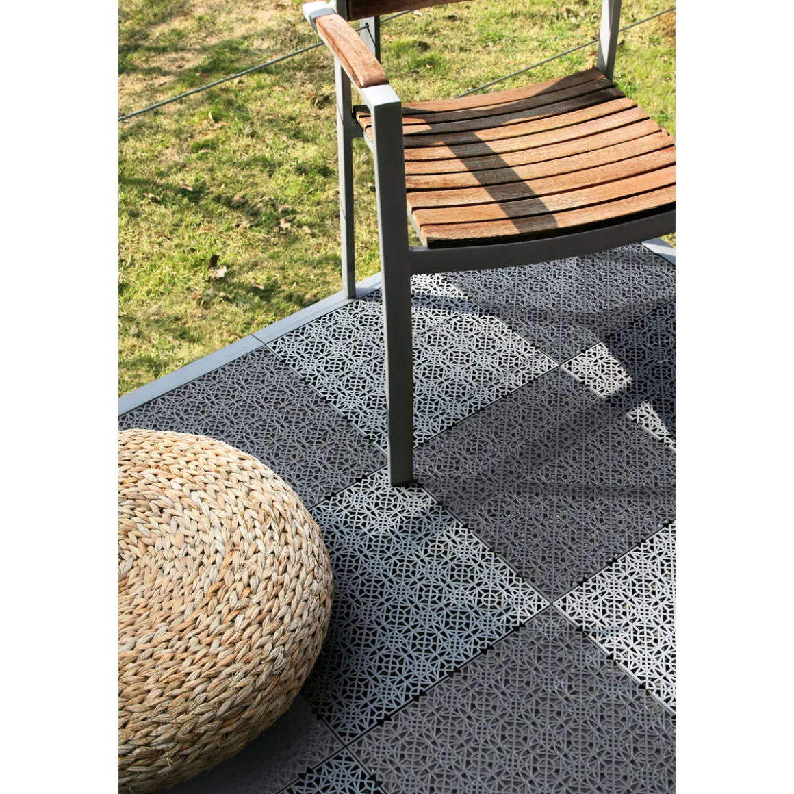 Mit den Kunststofffliesen Terra Sol dunkelgrau können Sie Ihre Terrasse, Ihren Balkon oder Ihre Garage schnell und einfach verschönern. Die robusten Fliesen sind in einer ansprechenden grauen Farbe gehalten und lassen sich unkompliziert verlegen.