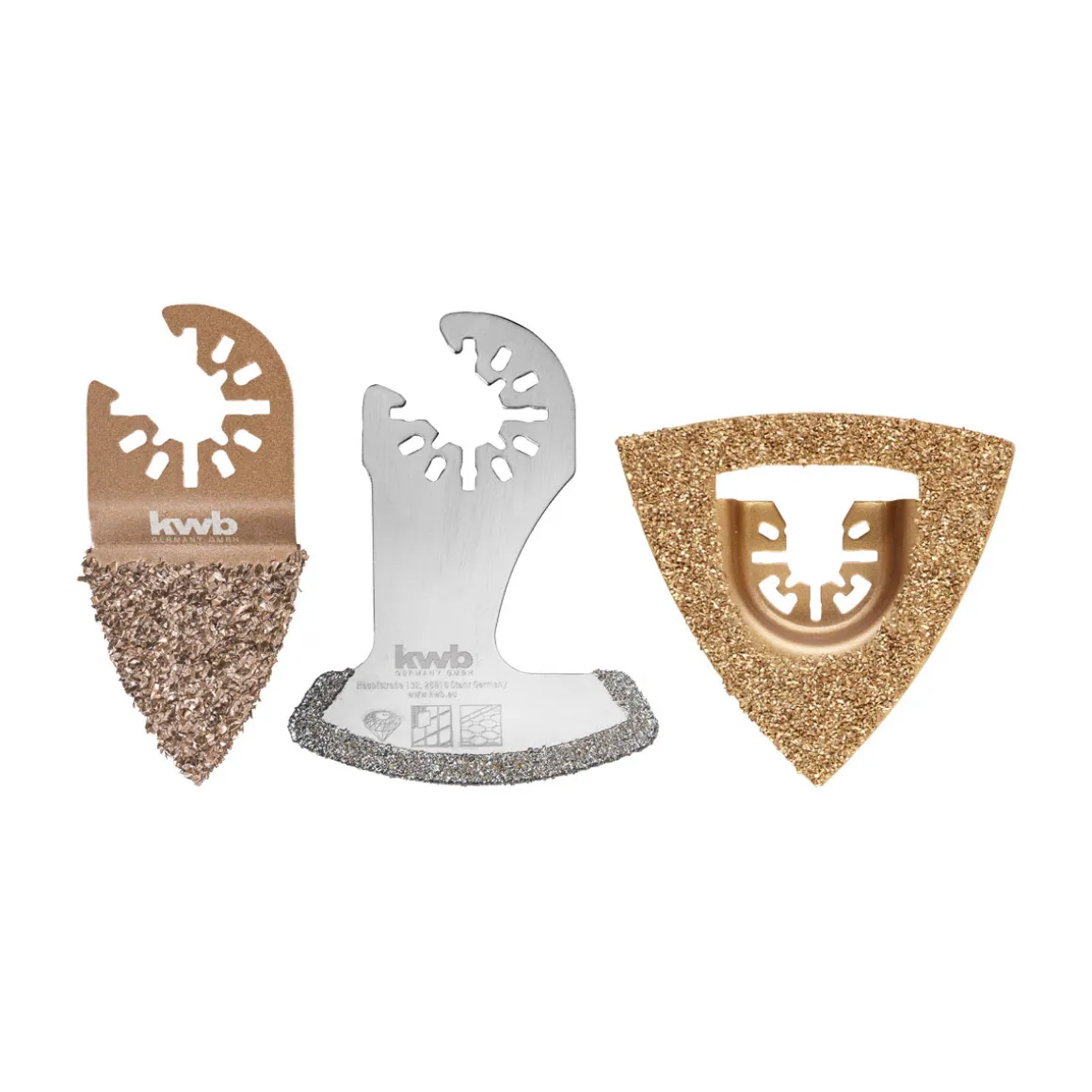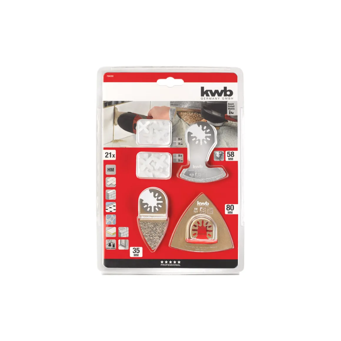 - Inhalt: 1x Tauchsägeblatt, 1x Hartmetall-Delta-Raspel, 1x Fingerraspel, 9x Fugenkreuz (4 mm), 9x Fugenkreuz (5 mm), 1x doppelseitige Hartmetall-Fingerspitzenraspel, 1x Diamond Boot Sawblade (Größe: 3 und 4 mm), Multi-Tool-Set HM-Dia Fliesen (80 mm)