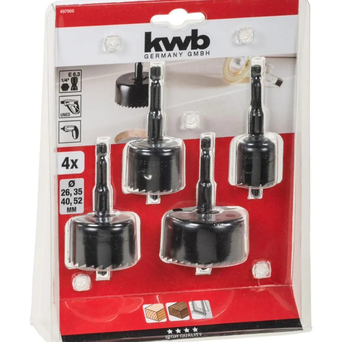 Mit dem kwb Lochsägensatz haben Sie das perfekte Zubehör für Ihre Holzarbeiten. Die vier verschiedenen Durchmesser sorgen für eine hohe Flexibilität und Präzision bei der Arbeit.