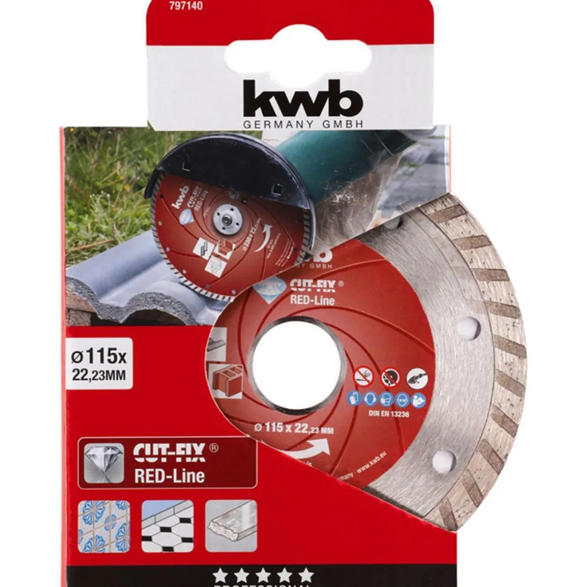 - Die kwb Trennscheibe Cut-Fix Red-Line ist eine Diamanttrennscheibe mit einem Durchmesser von 115 mm.